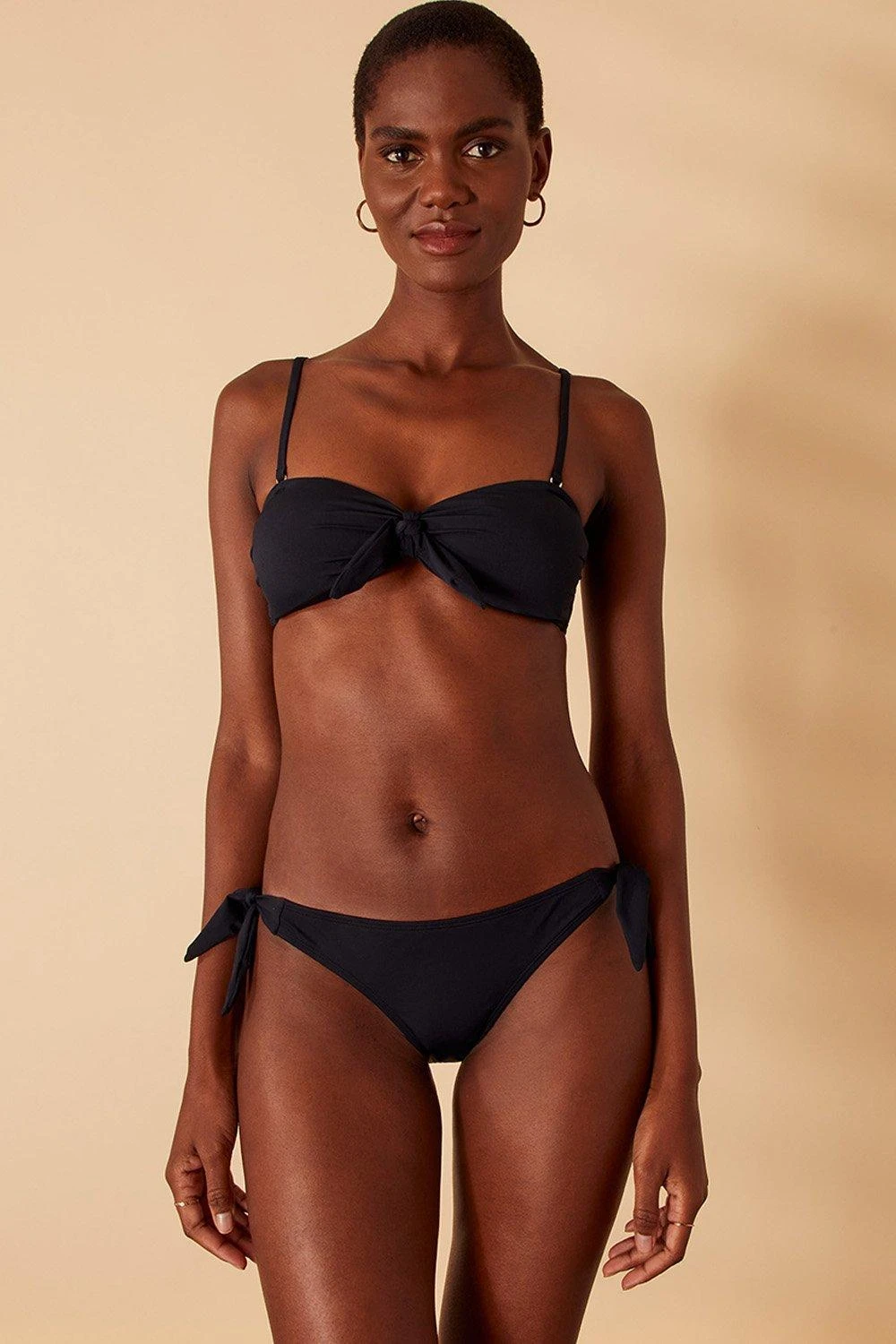 A quick-and-easy option for the beach, this bikini is designed in stretchy swim fabric that moulds to your body’s shape beautifully. Finished with bunny ties to the side.