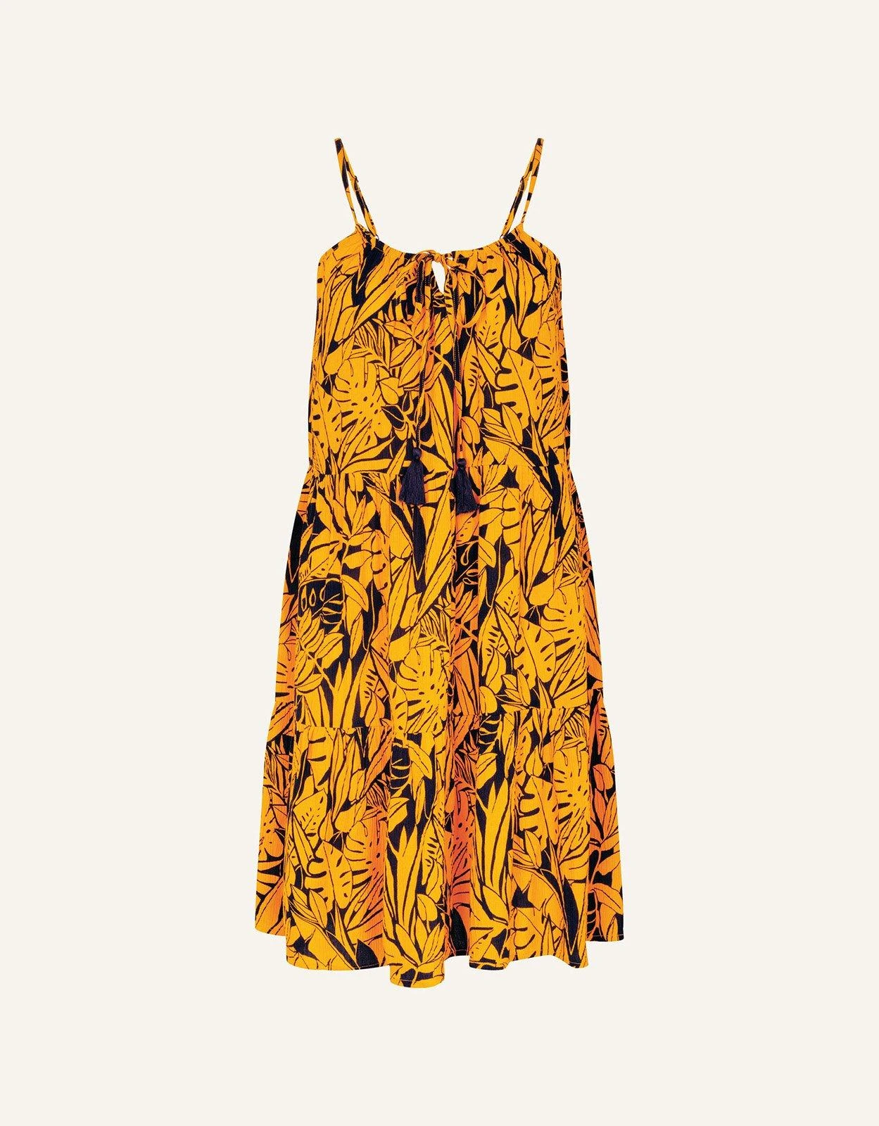 Something simple to slip on over your swimwear for quick trips to the beach bar, this mini dress is designed with a vibrant leaf print and tassel tie neckline. It boasts a super relaxed fit to catch the warm breeze, with a mini length skirt so your legs can soak up the rays.