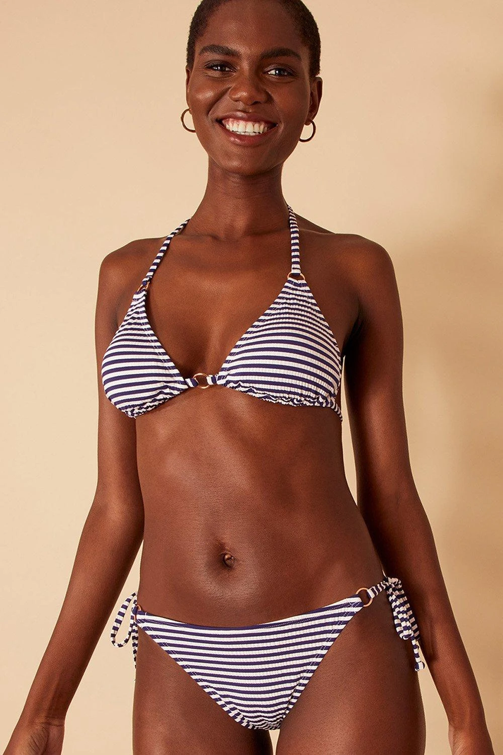 Perfect for dipping in and out the pool, these bikini bottoms feature nautical stripes over a basic brief. Adjustable for your comfort, they tie at the sides for a perfect fit.