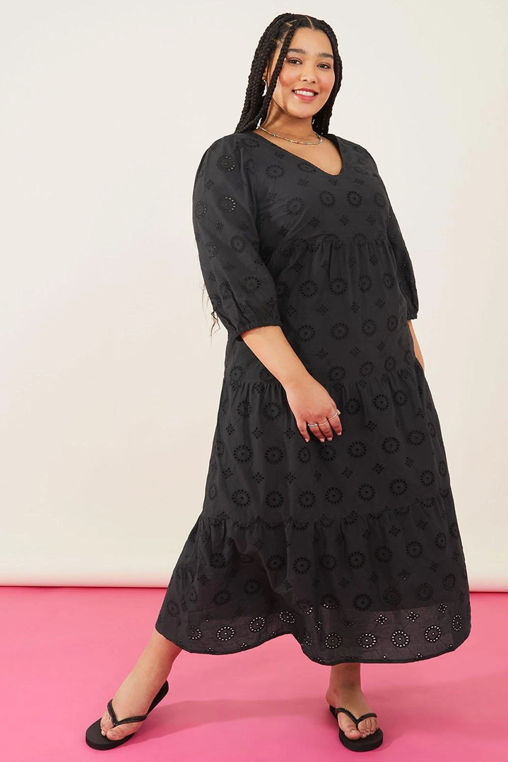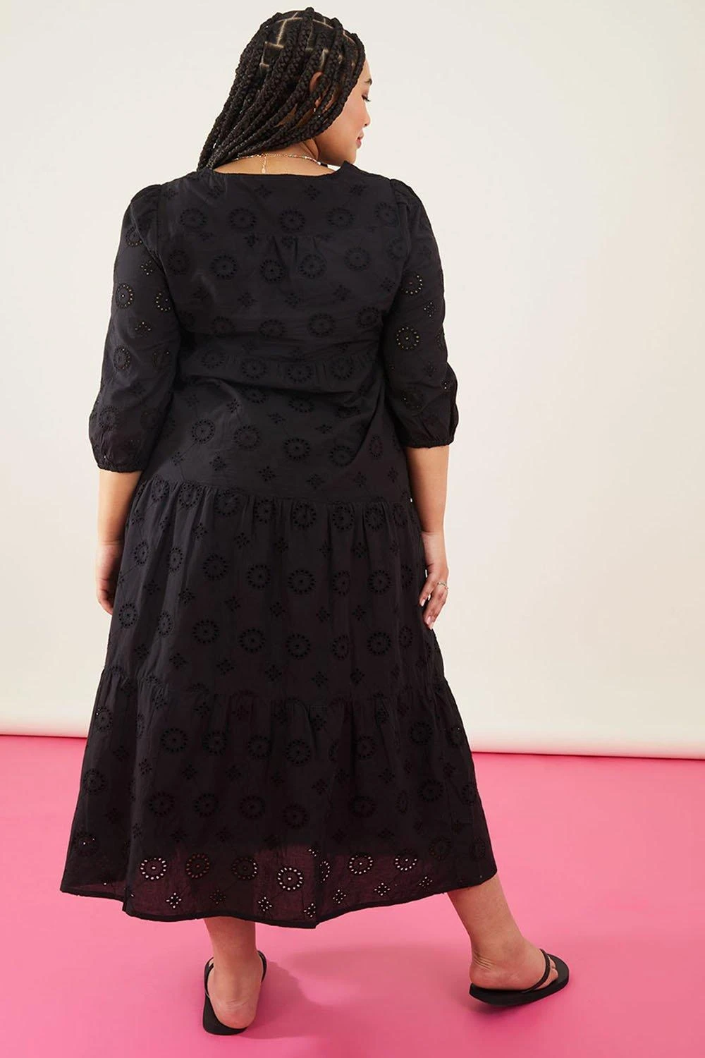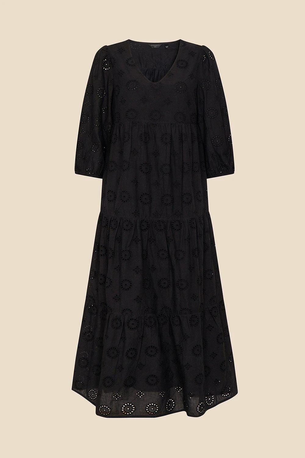Designed with a delicate schiffli embroidery, this midi dress is appropriately breezy for the warmer months around the garden table with a glass of fizz in hand. The midi-length skirt falls in a tiered and relaxed manner, with a v-neckline, and long sleeves.