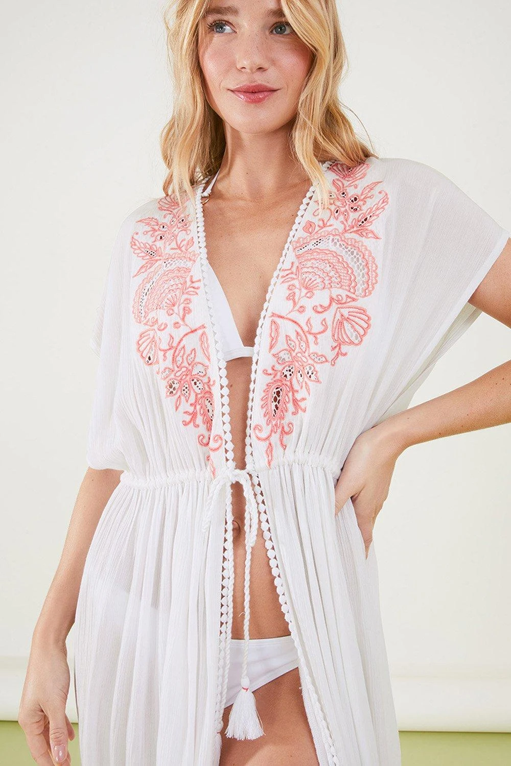 Accessorize Shell Embroidered Tie Waist Kaftan