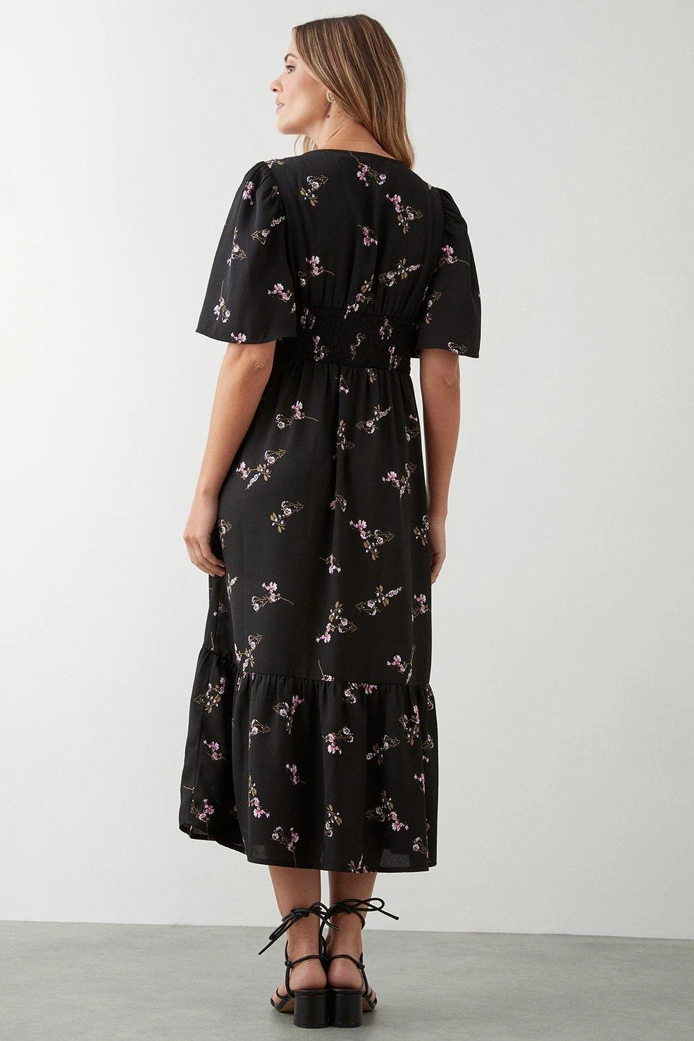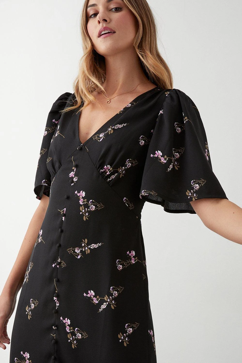 Dorothy Perkins Black Floral Button Through Midi Dress