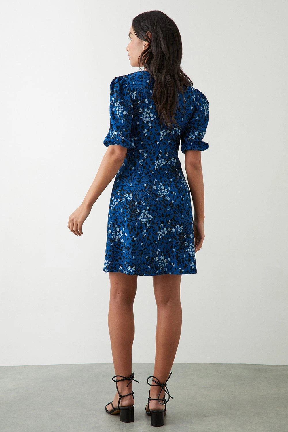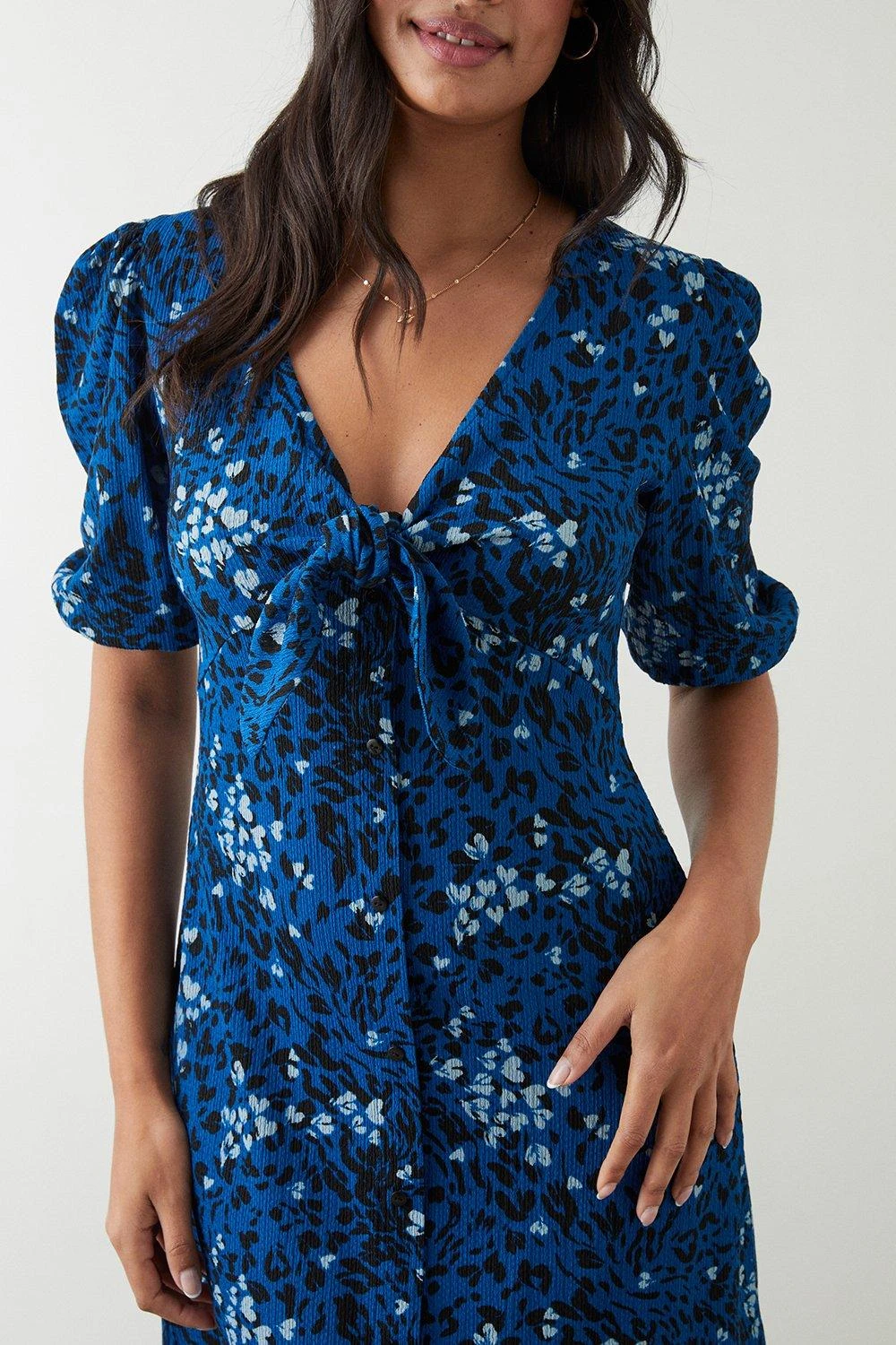 Dorothy Perkins Blue Printed Tie Front Button Through Mini Dress