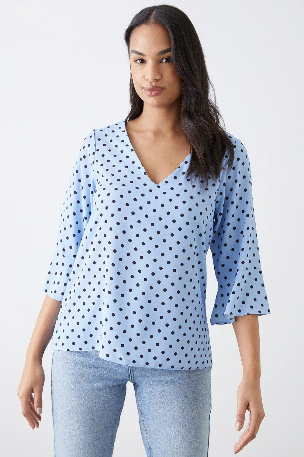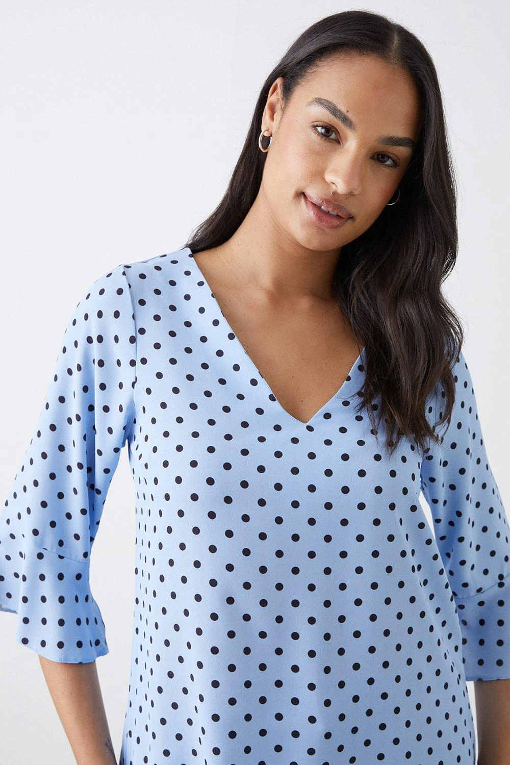 Dorothy Perkins Blue Spot Frill Sleeve V Neck Blouse
