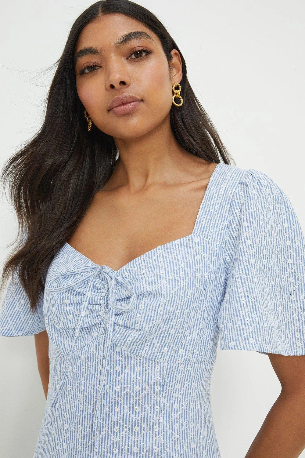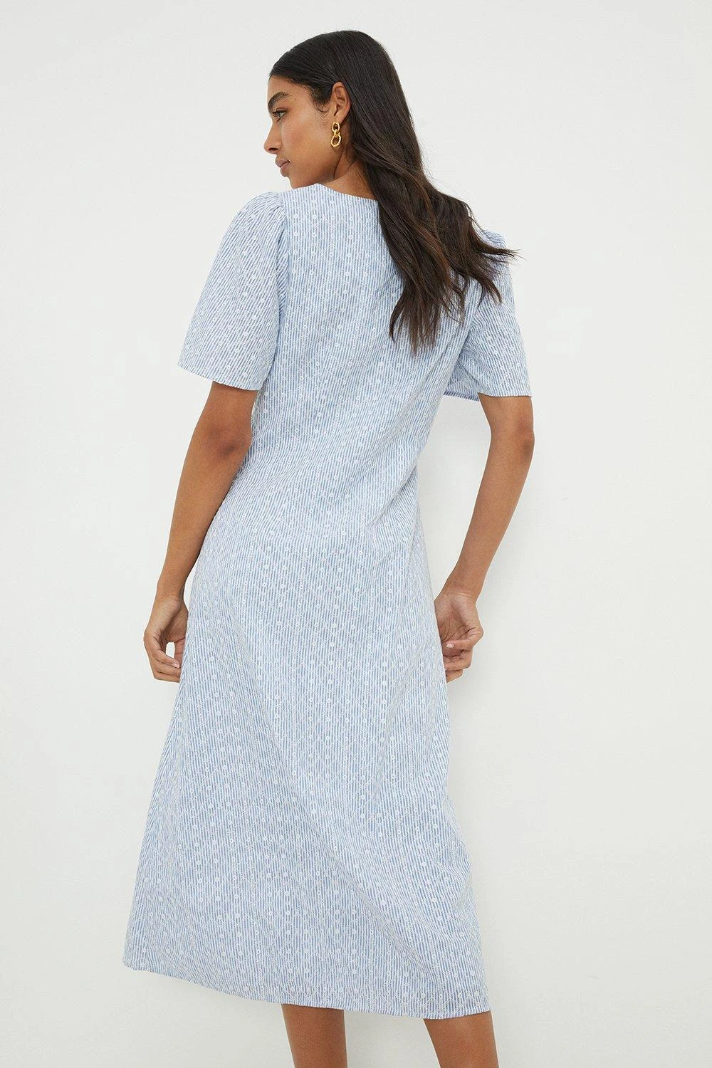 Dorothy Perkins Blue Stripe Cutwork Embroidered Midi Dress