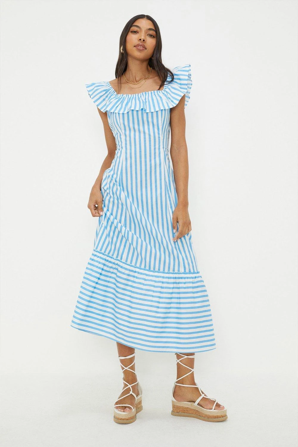 Dorothy Perkins Blue Stripe Frill Neck Midi Dress