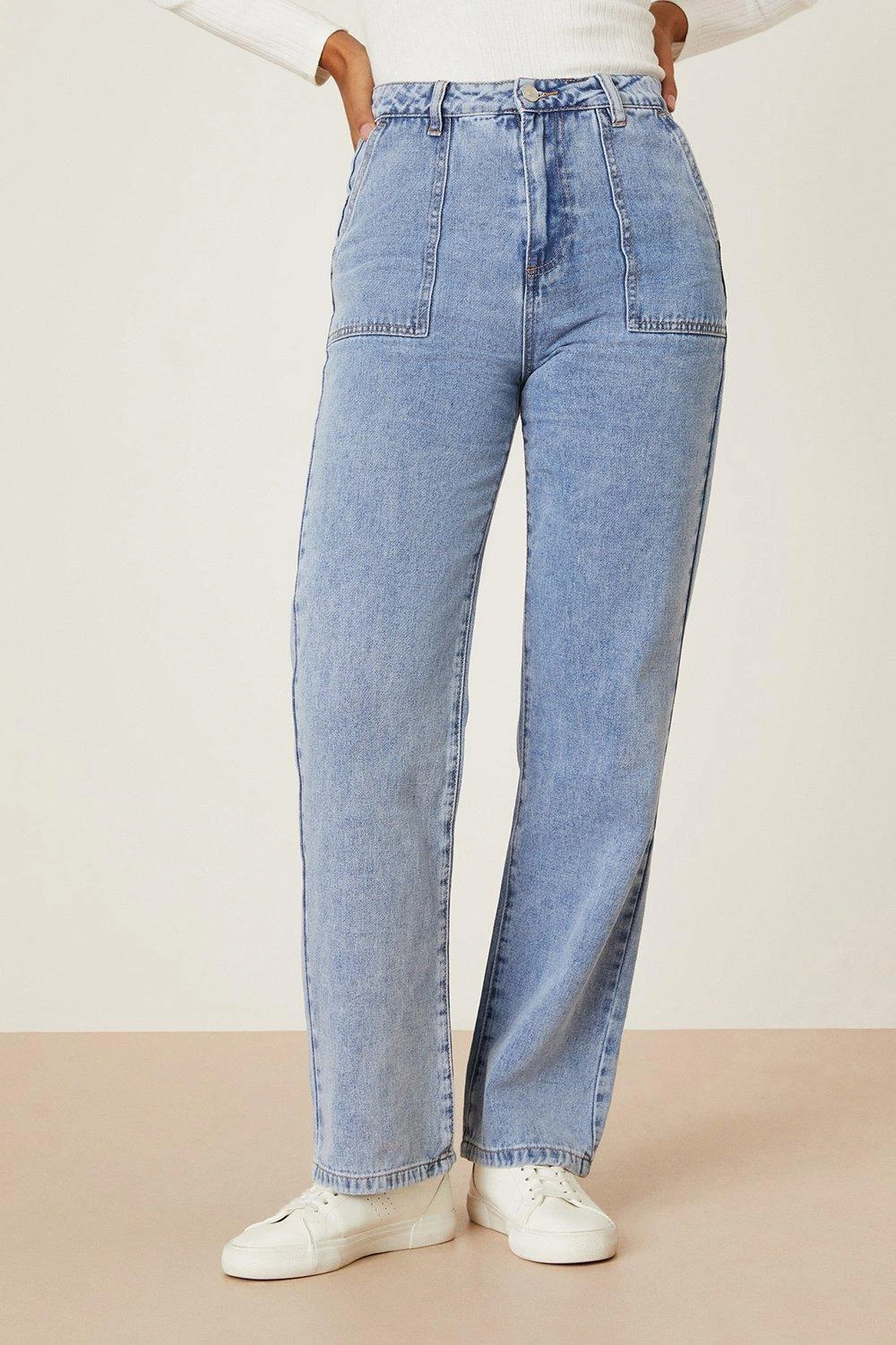 Destination denim. From classic straight leg and your favourite skinny’s and jeggings to retro-inspired wide leg and tapered mom jeans, find your dream fit in our women’s jeans collection. Whether you want to make a statement or looking to update your essentials, our edit of women’s jeans has you covered for every mood and moment.Style: Cargo Detail Straight Leg JeanLength: Approx. 76cmFit: StraightIdeal for: DaywearDesign: Cargo