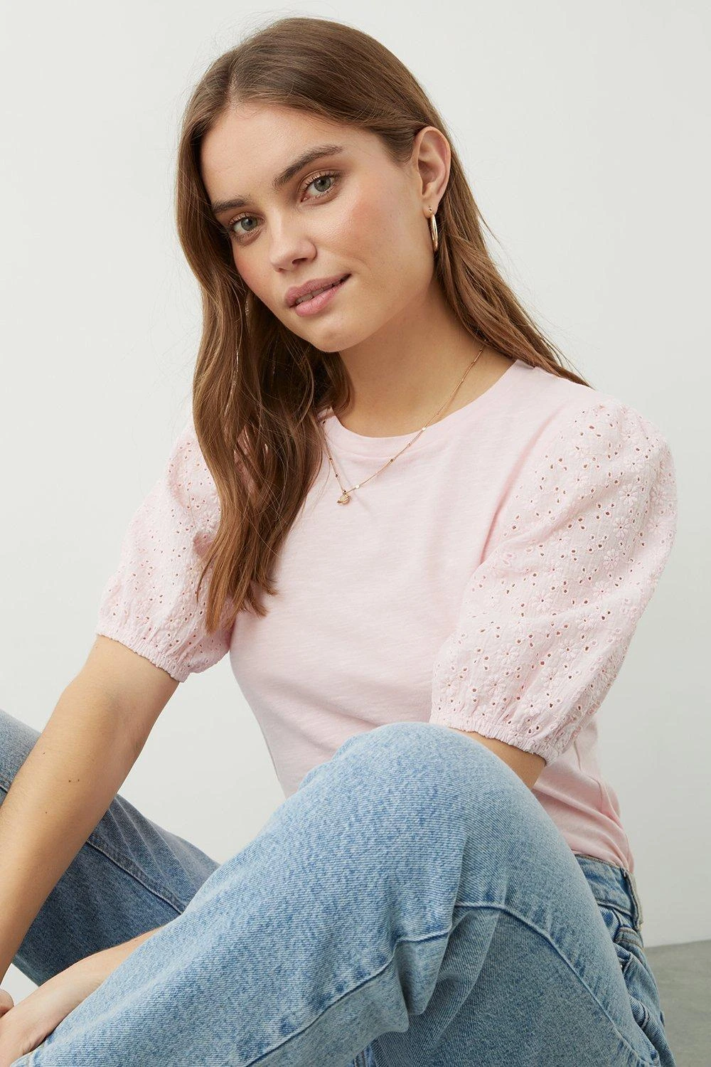 Dorothy Perkins Cotton Broderie Sleeve Top