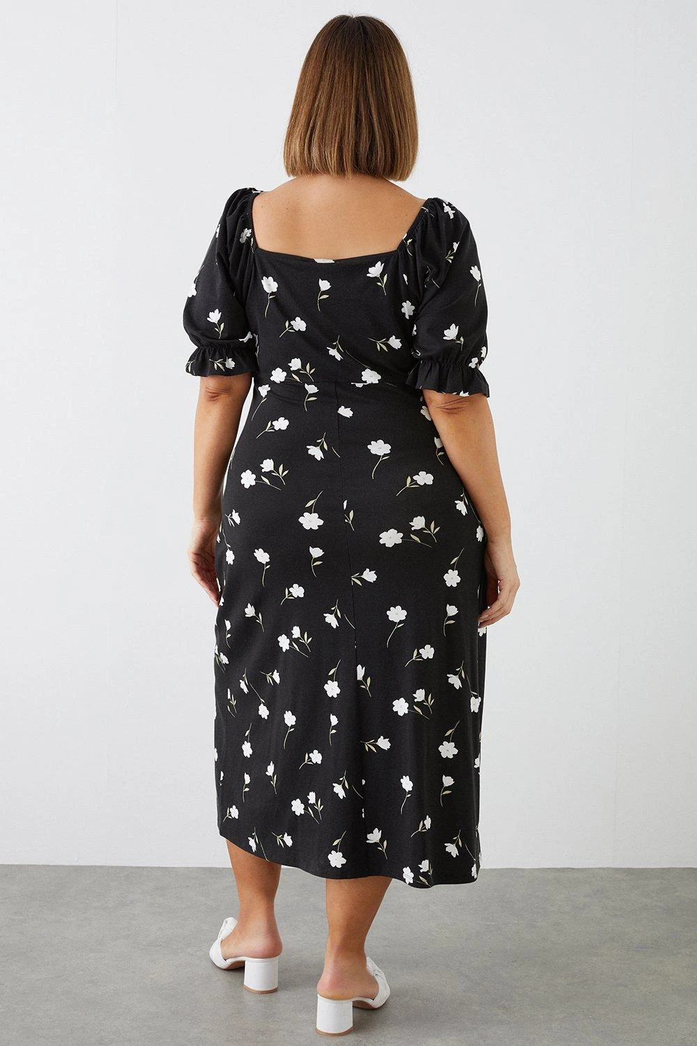 Dorothy Perkins Curve Black Floral Ruched Front Short Sleeve Midi Dress