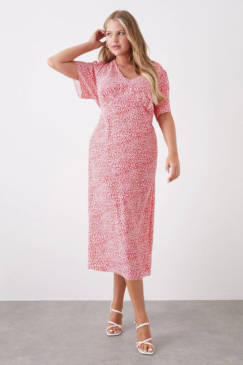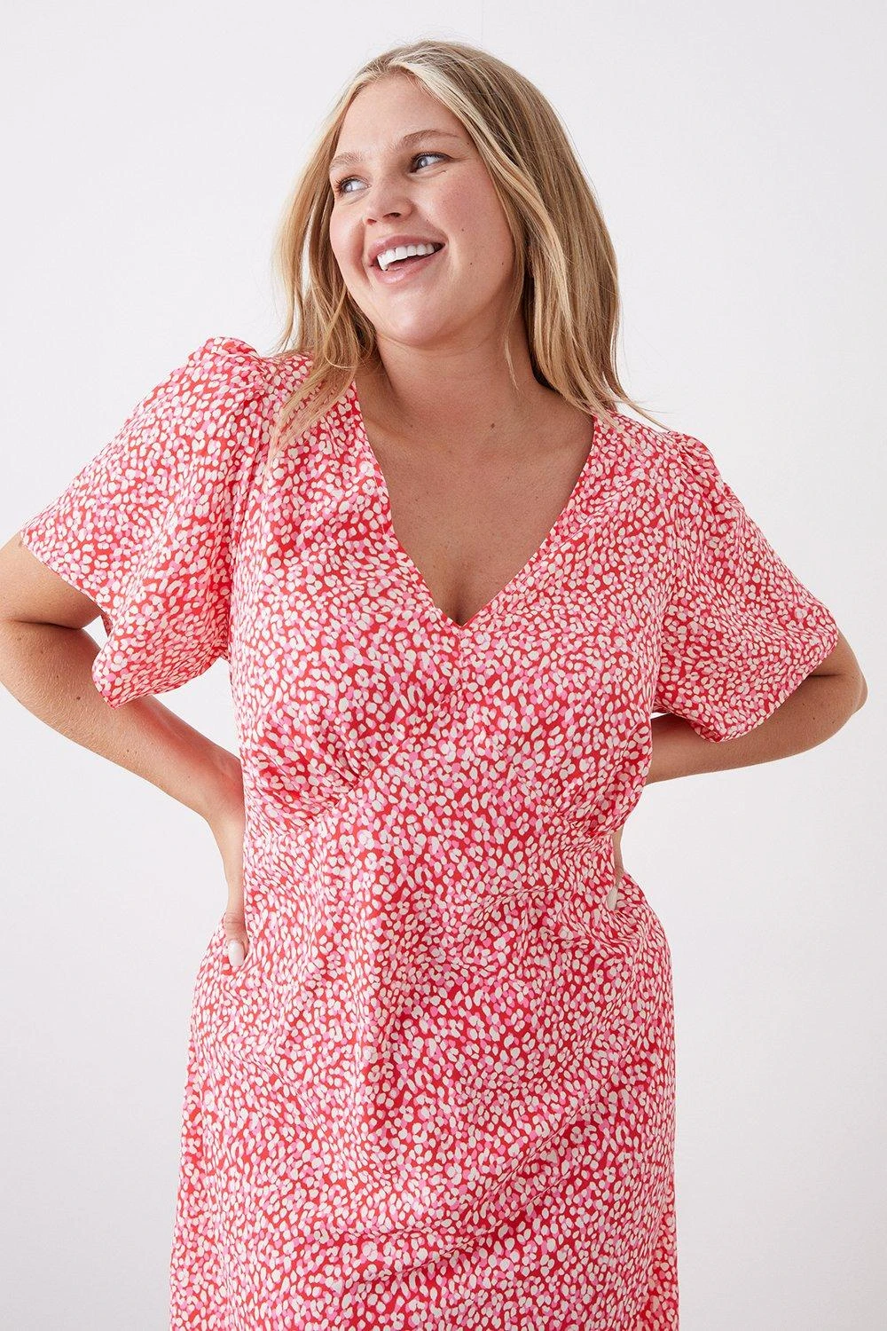 Dorothy Perkins Curve Pink Animal Empire Seam Midi Dress