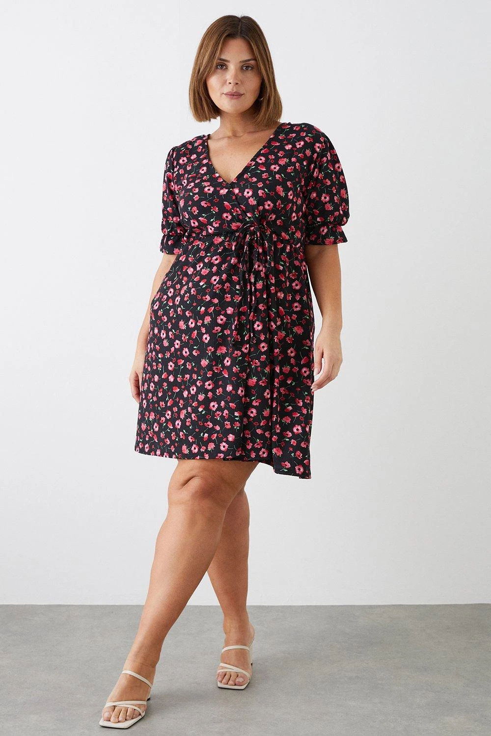 Dorothy Perkins Curve Red Floral Wrap Mini Dress