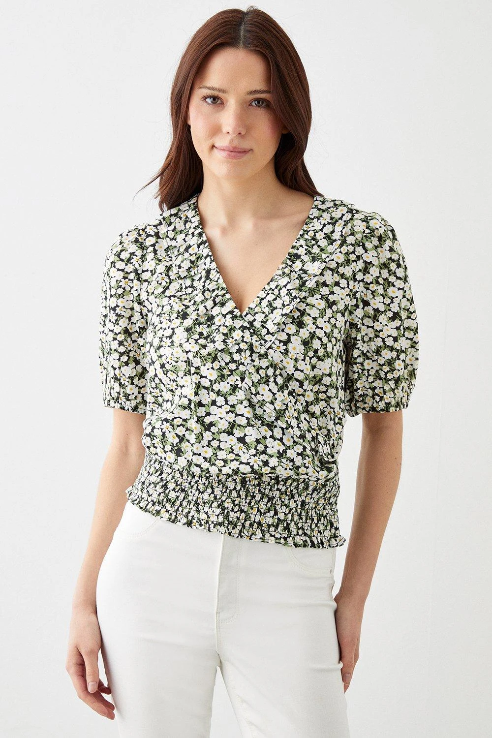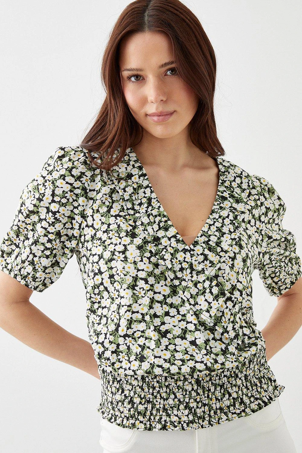 Dorothy Perkins Ditsy Shirred Hem Wrap Blouse