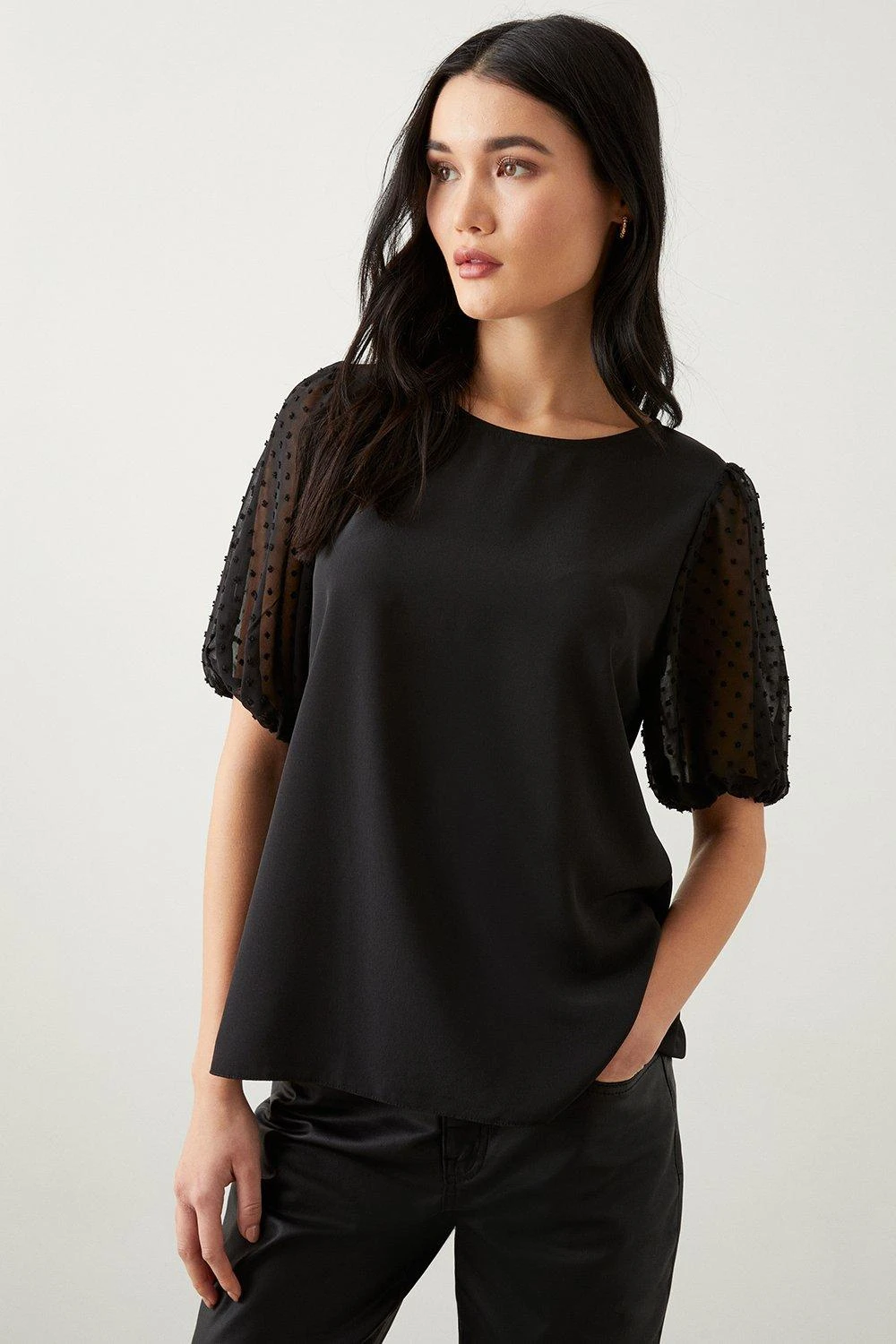 Dorothy Perkins Dobby Chiffon Contrast Sleeve Blouse