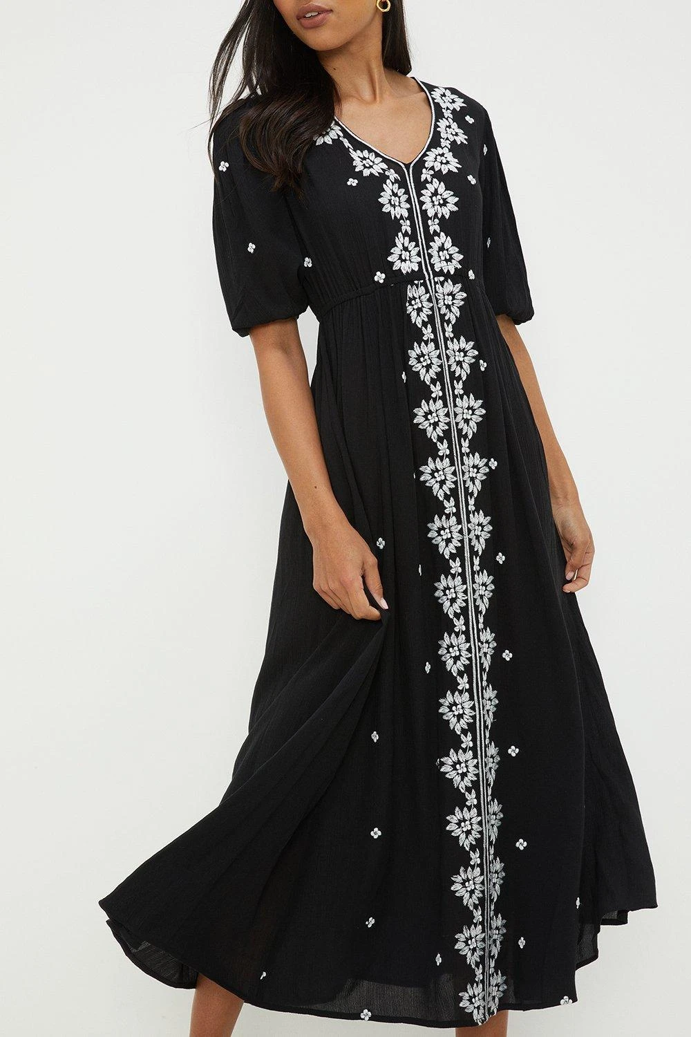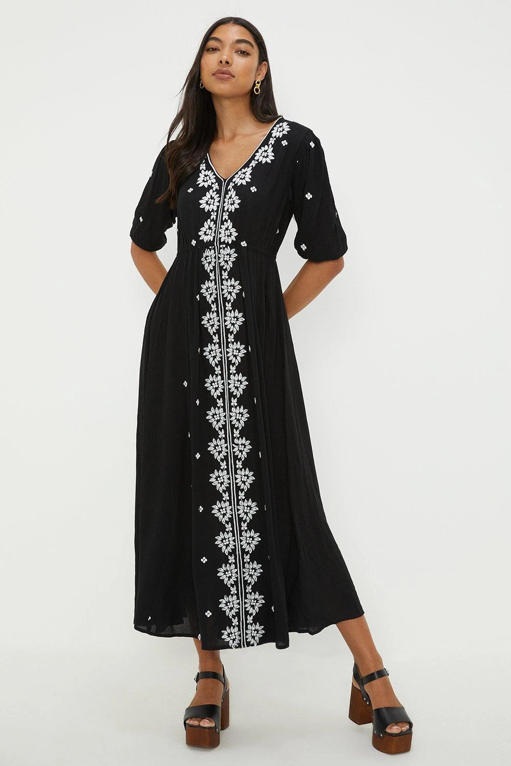 Dorothy Perkins Embroidered V Neck Midi Dress