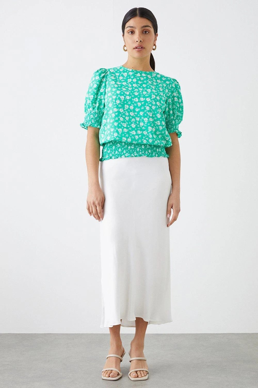 Dorothy Perkins Green Ditsy Shirred Hem Top