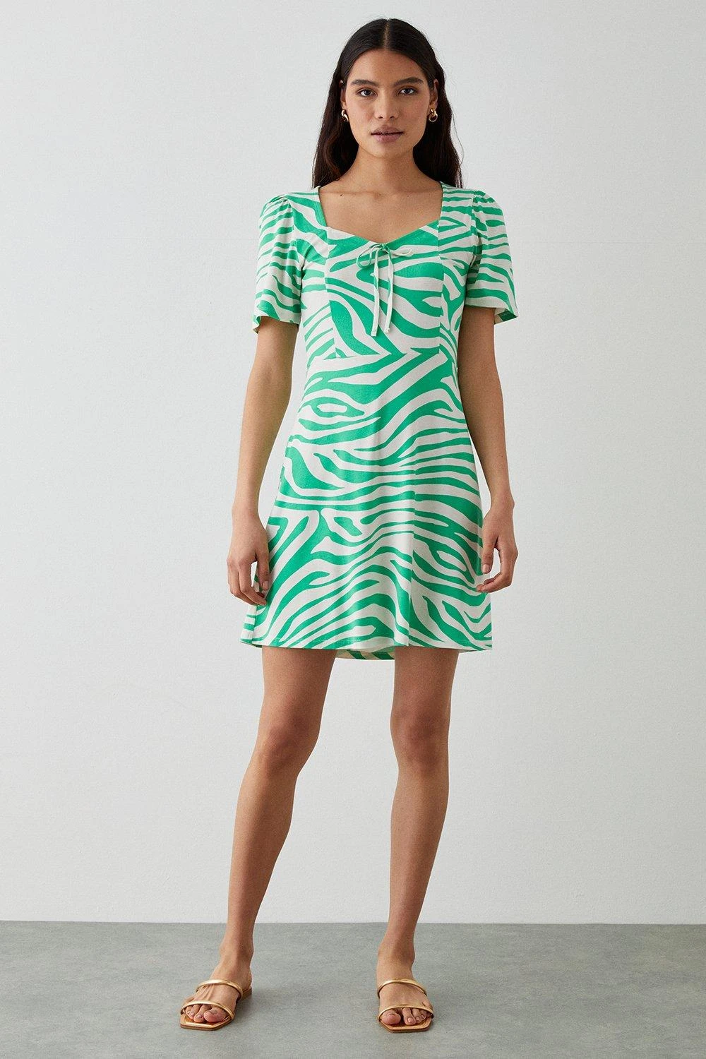 Dorothy Perkins Green Zebra Tie Front Mini Dress