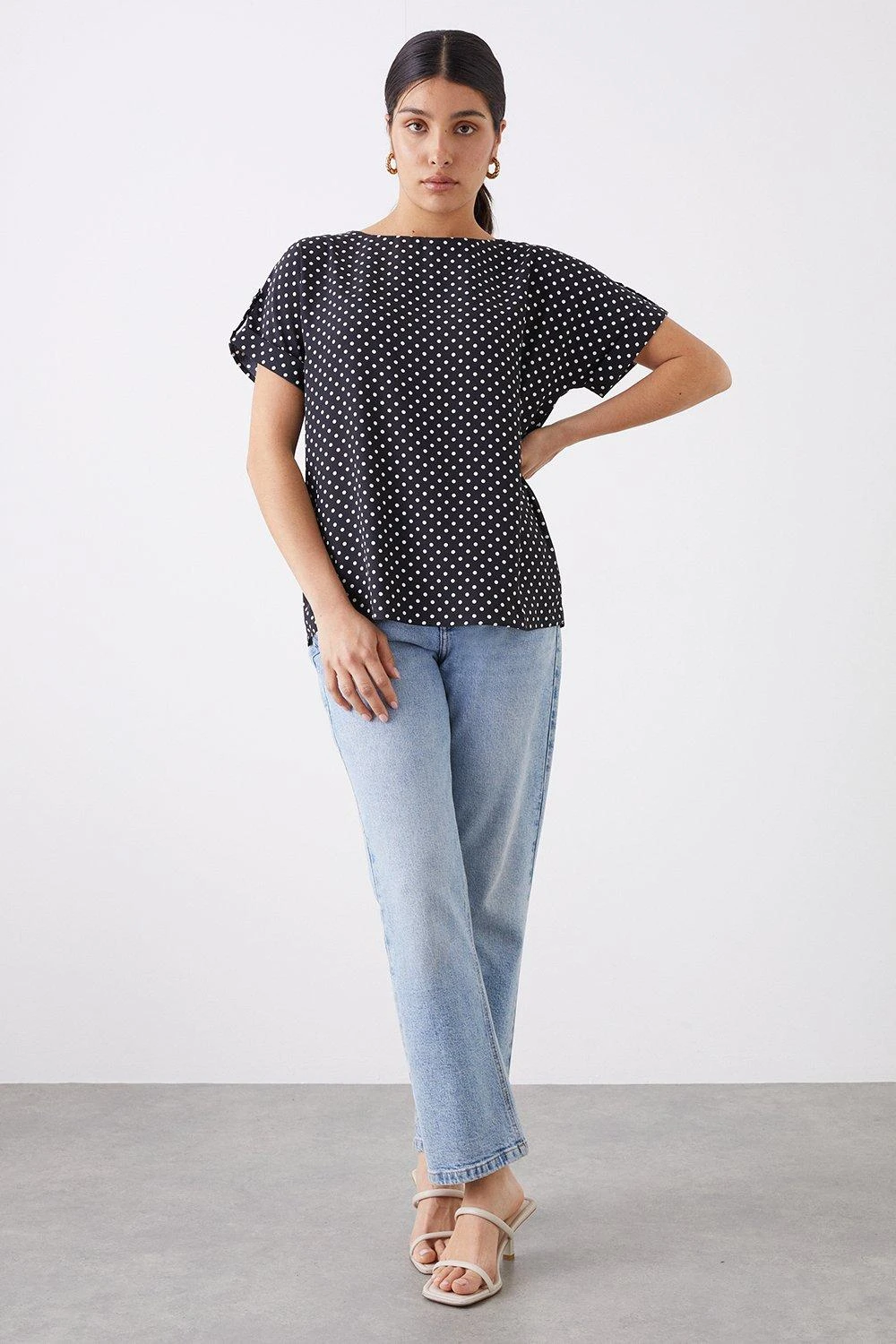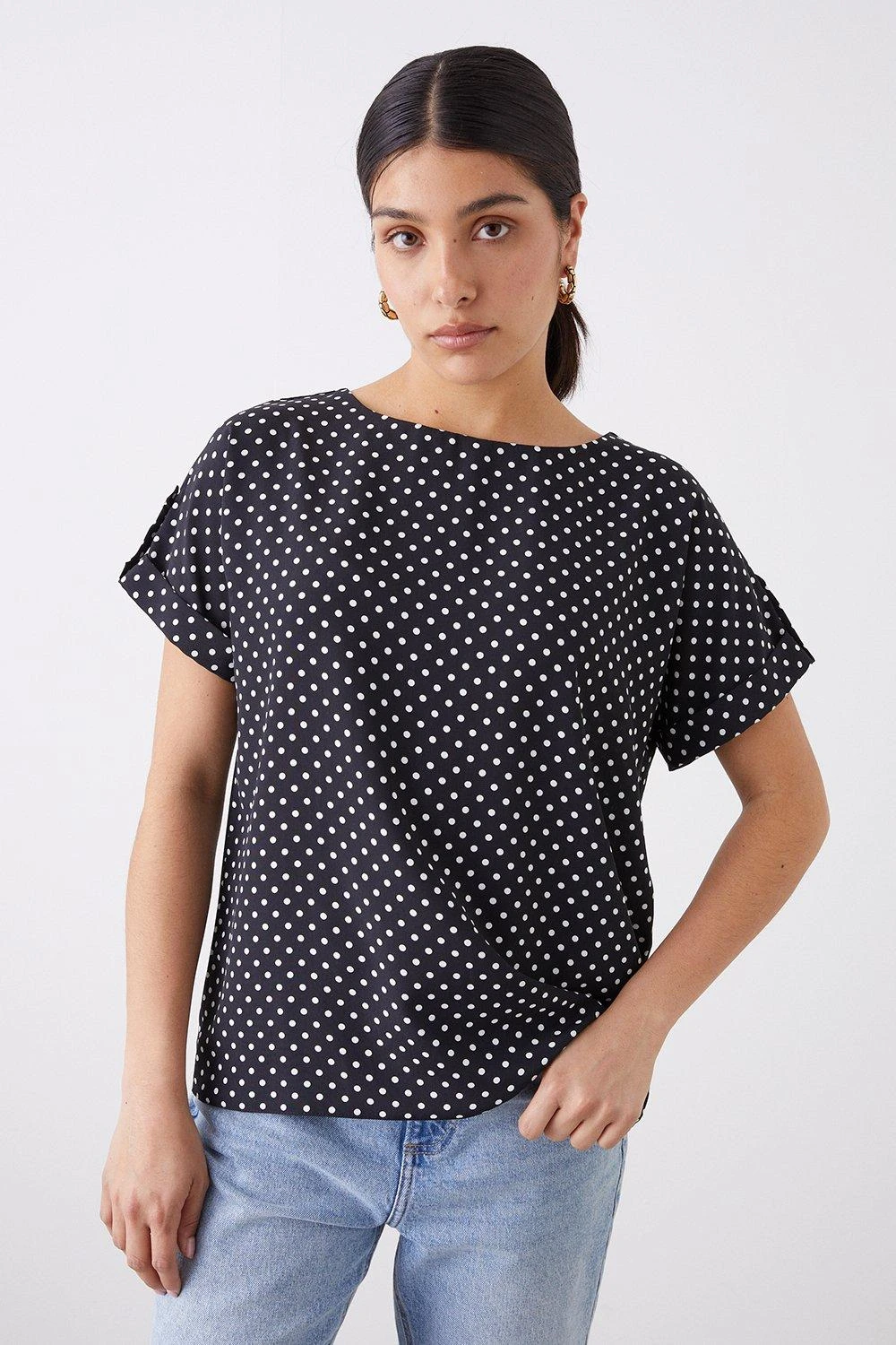 Dorothy Perkins Ivory Spot Roll Sleeve Blouse