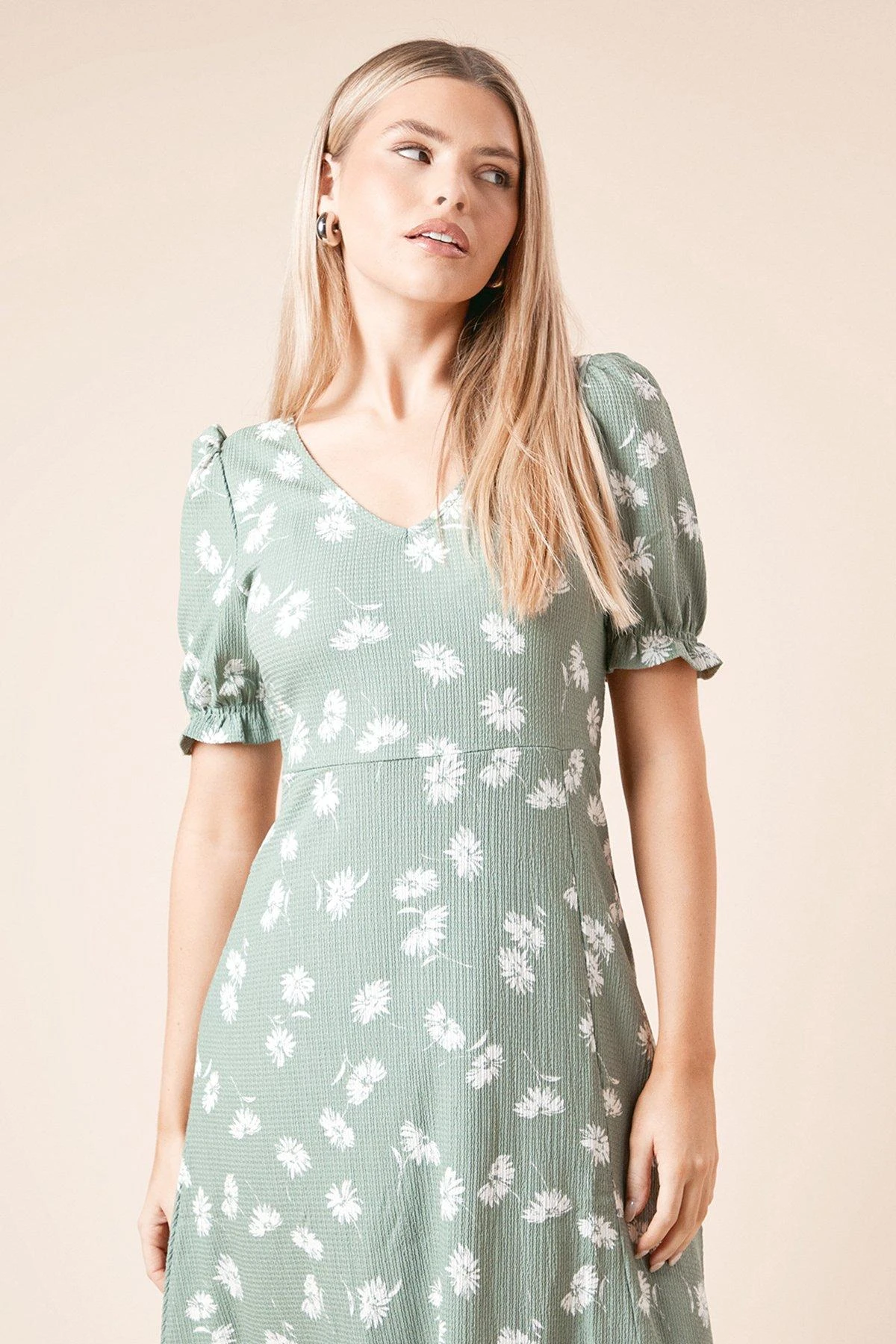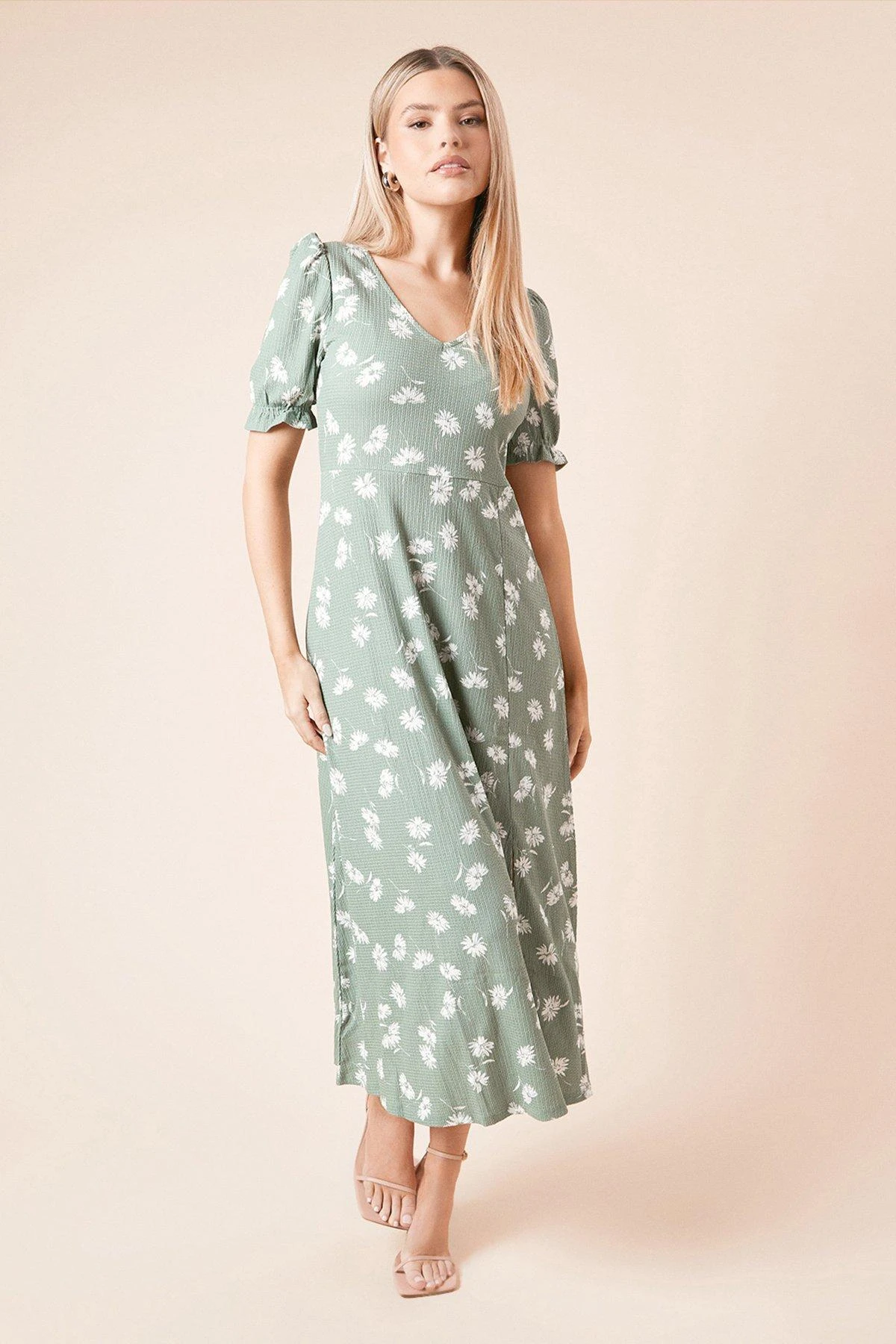 Dorothy Perkins Khaki Ditsy Print Short Sleeve Midi Dress