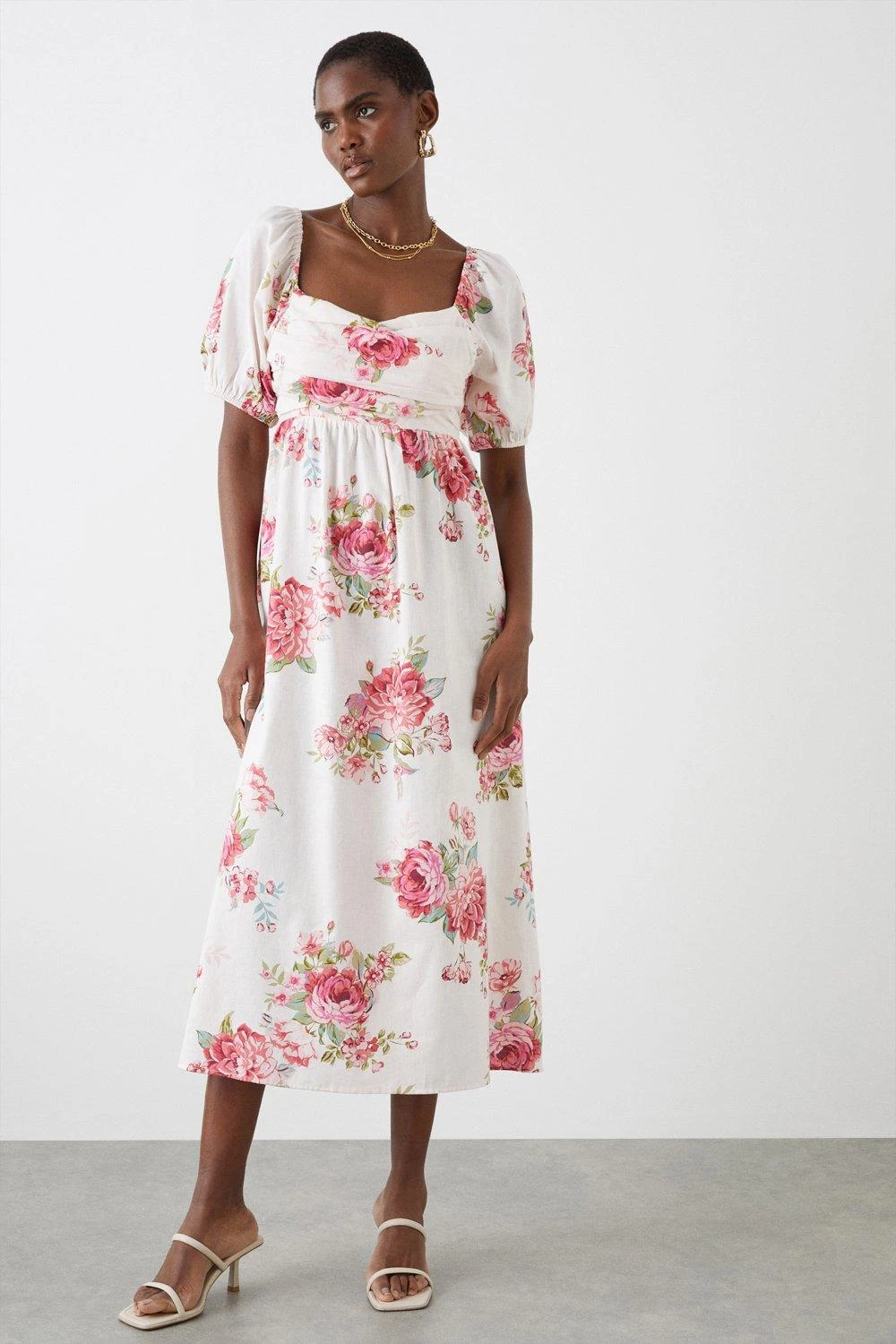 Dorothy Perkins Large Floral Cross Over Detail Midi Dress
