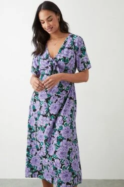 Dorothy Perkins Lilac Large Floral Tie Front Midi Dress