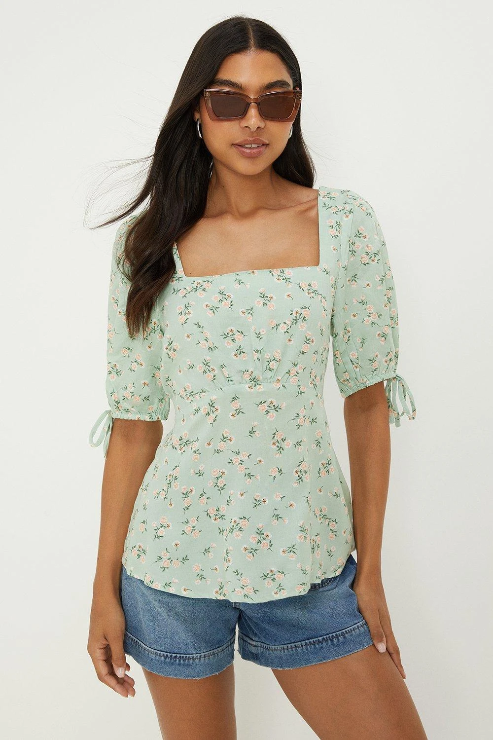 Cami or blouse? Shirt or bodysuit? Whatever you’re after, our women’s tops have you covered for every event in the social calendar. From casual fits to elevated styles for special occasions, we make it easy to nail the ‘jeans and a nice top’ look. Think puff sleeves, pretty prints, wrap silhouettes and so much more. Style: Green Ditsy Tie Sleeve Tea Blouse. Ideal for: Daywear. Design: Tie. Model wears size UK 10 and is 5′ 9″ tall. Make-up & Fragrance: Primer (Yves Saint Laurent, Touche Eclat Blur Primer 30ml), Foundation (Estée Lauder, Double Wear Stay in Place Foundation SPF10), Bronzer (Benefit, Hoola Matte Powder Bronzer), Blusher (Benefit, Wanderful World Blushes Starlaa Rosy Bronze Powder Blusher), Setting Spray (Urban Decay, All Nighter Setting Spray 118ml), Fragrance (Ghost The Fragrance Eau De Toilette).