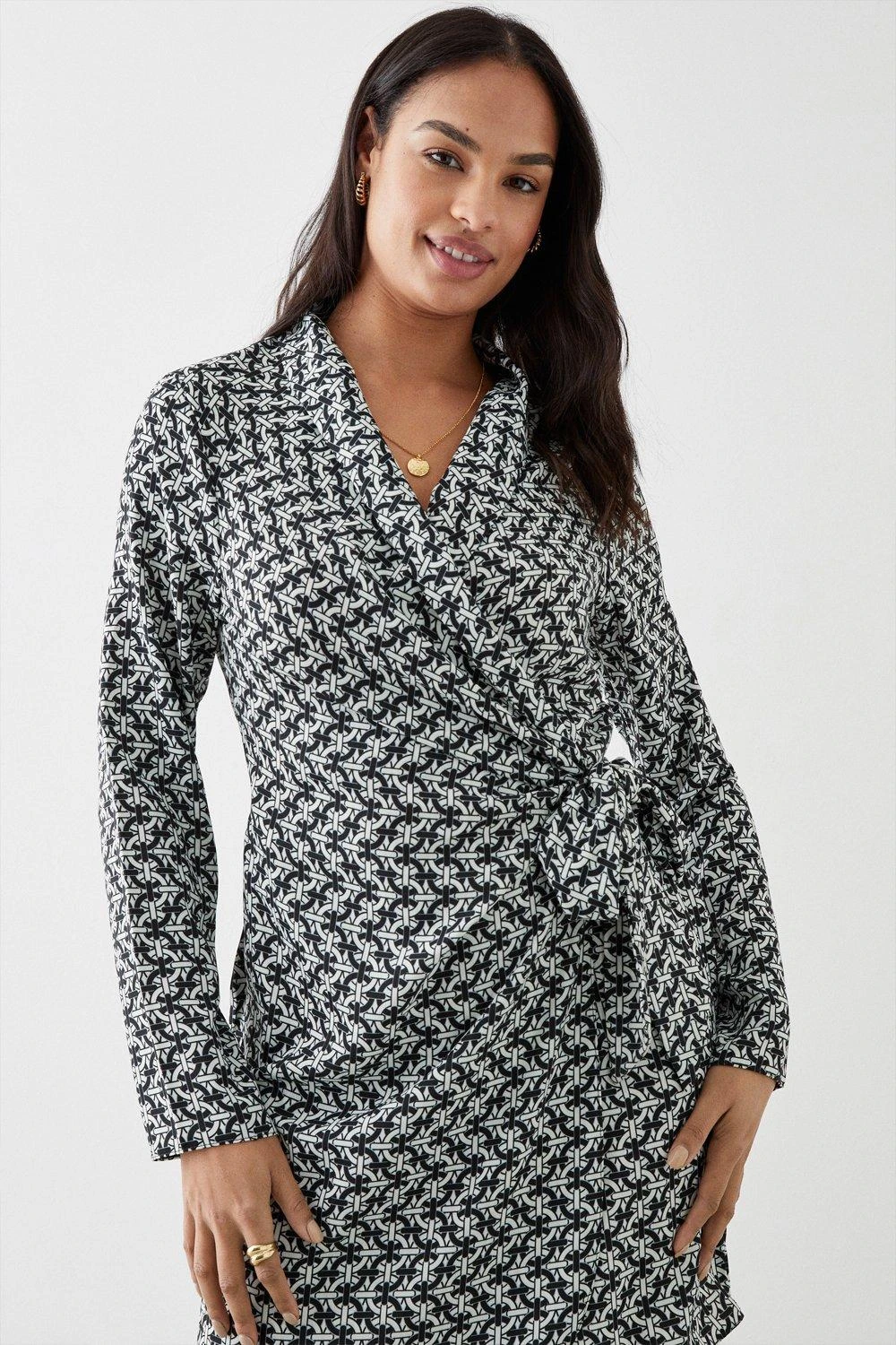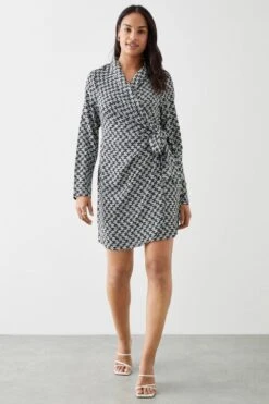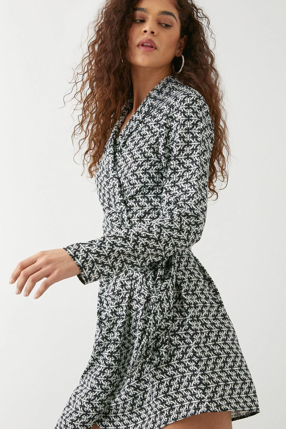 Dorothy Perkins Mono Geo Print Long Sleeve Wrap Mini Dress