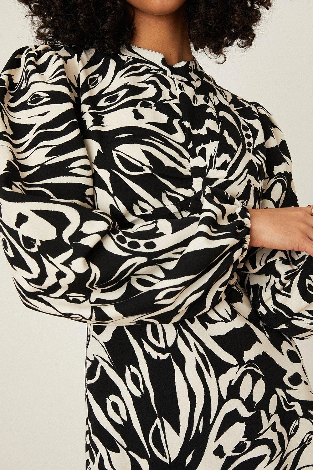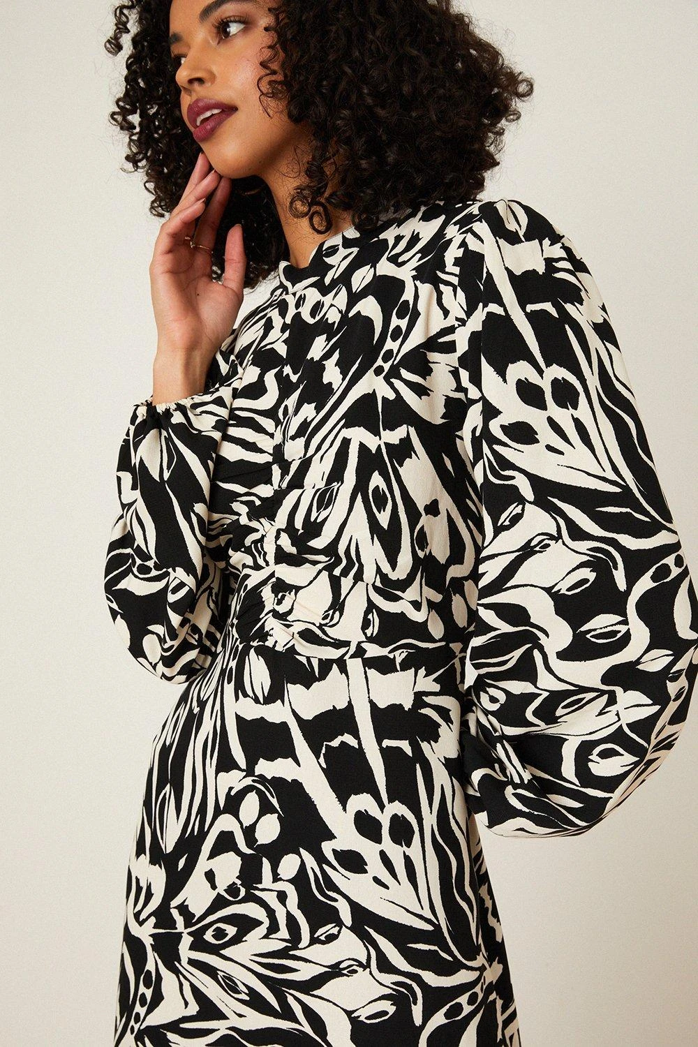 Dorothy Perkins Mono Print High Neck Ruched Midi Dress