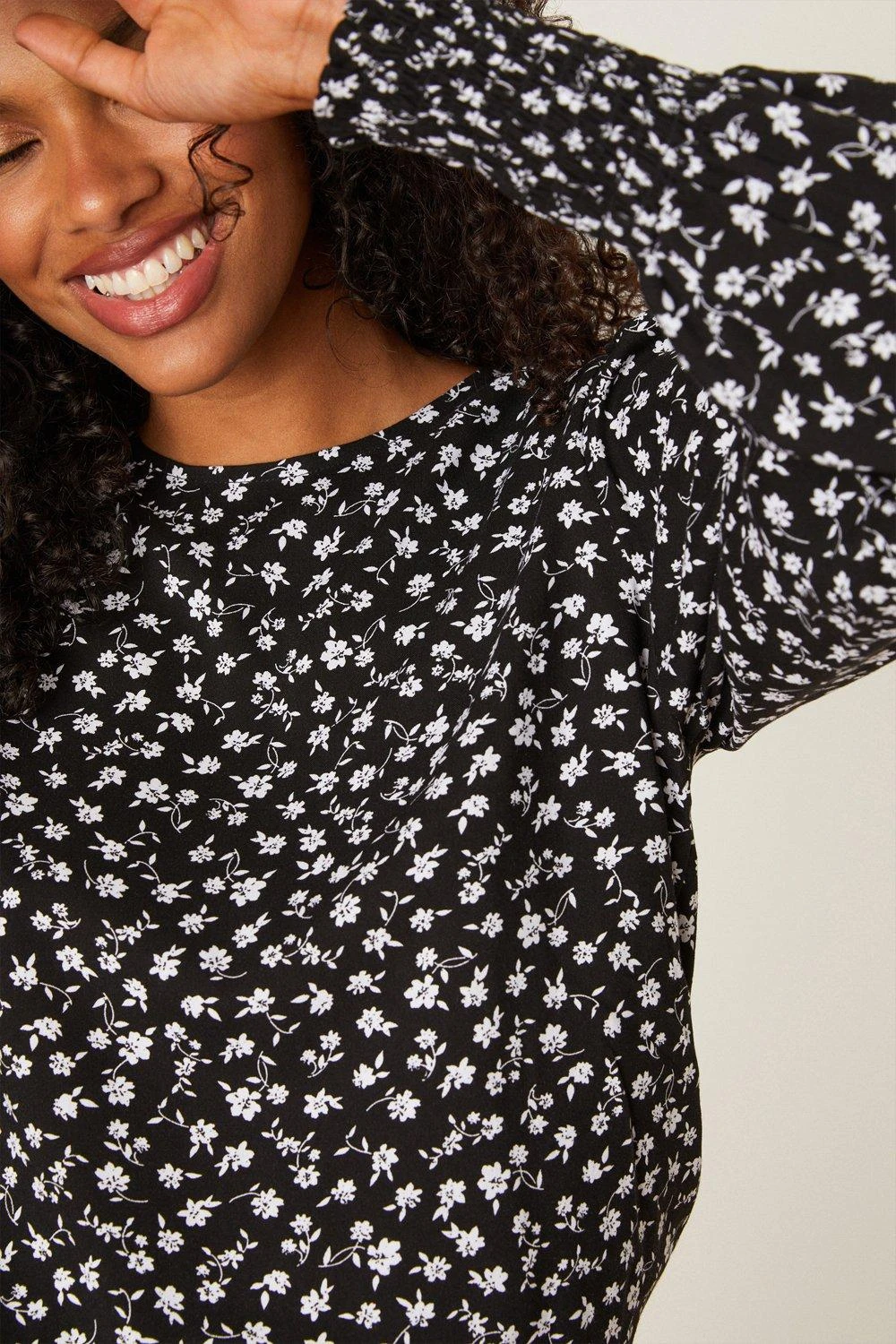 Dorothy Perkins Mono Print Shirred Hem Top