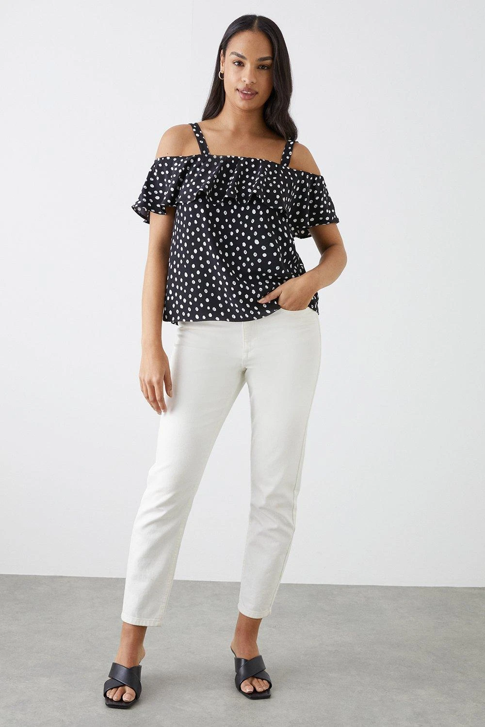 Dorothy Perkins Mono Spot Frill Neck Bardot Top