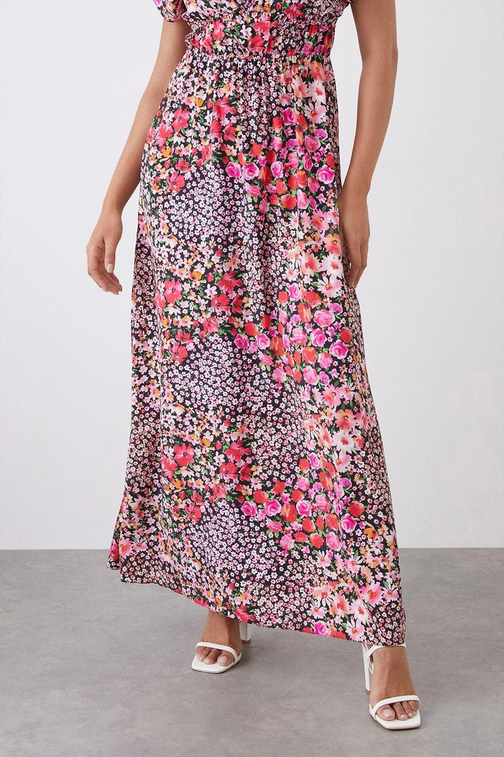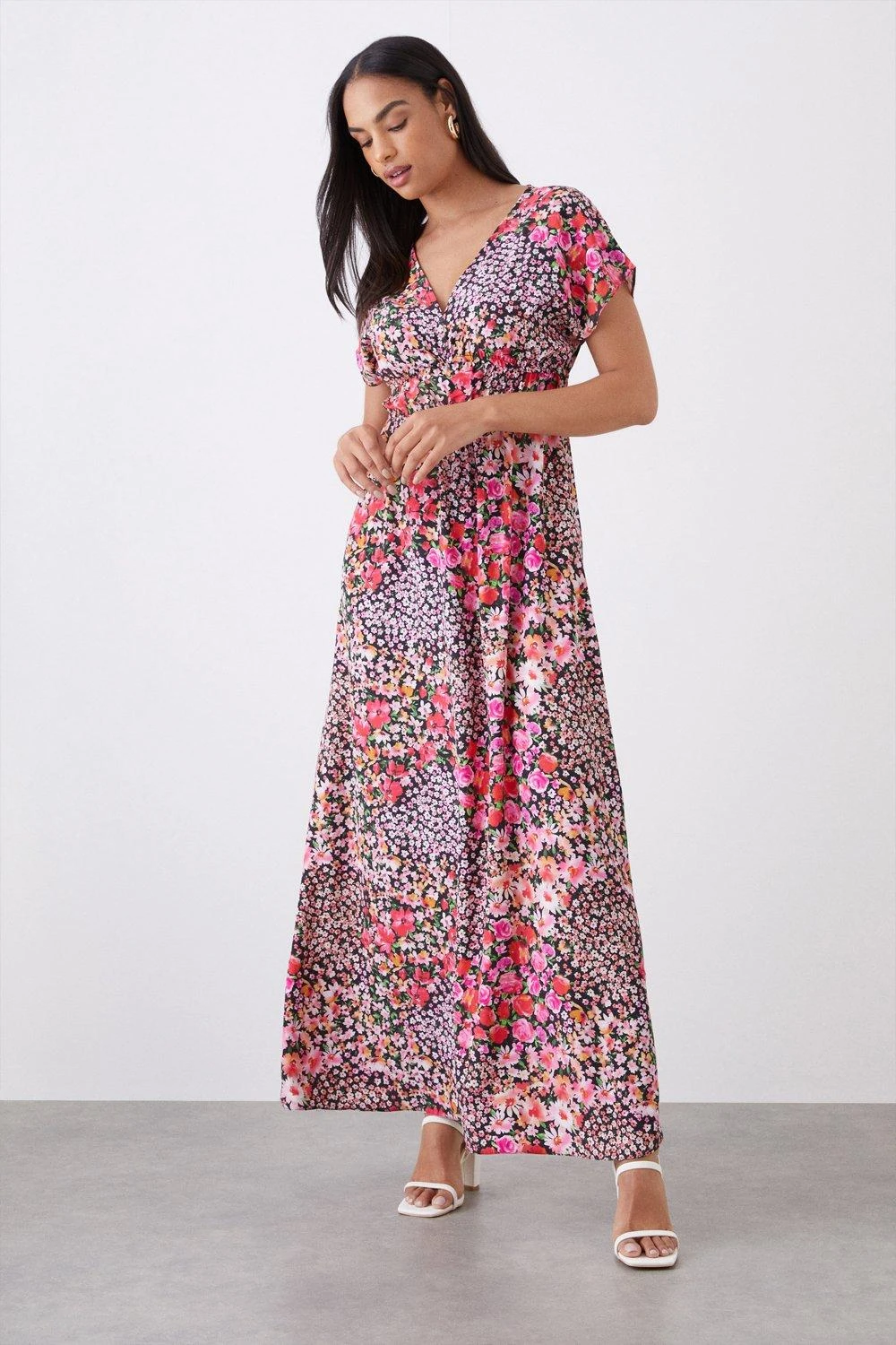 Dorothy Perkins Multi Floral Print V Neck Maxi Dress