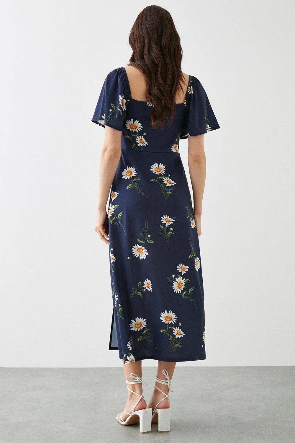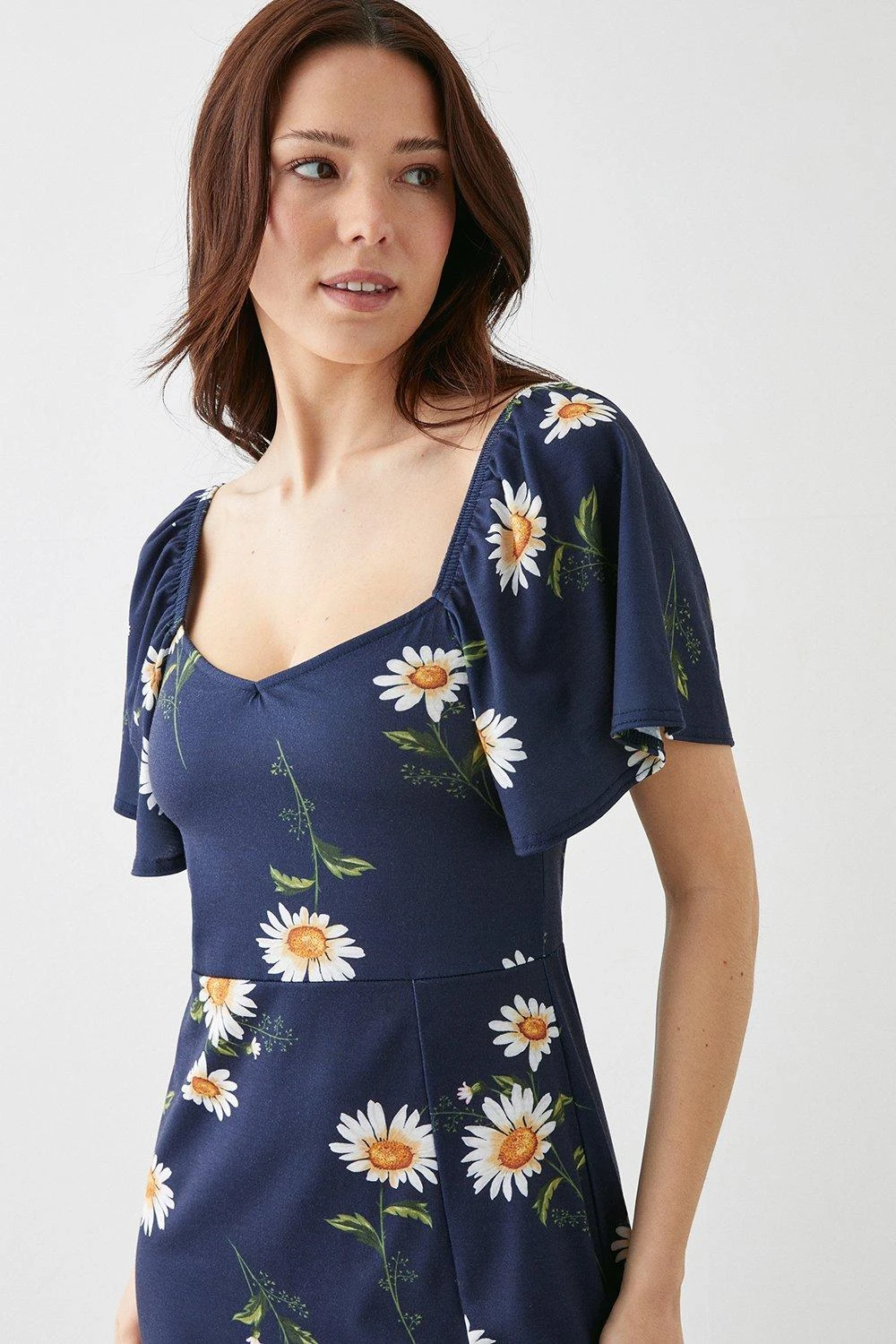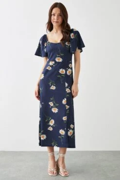 Dorothy Perkins Navy Daisy Flutter Sleeve Midi Dress