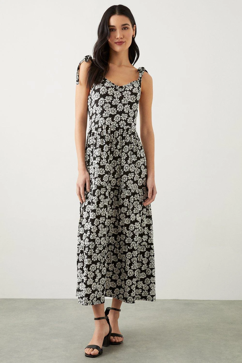 Dorothy Perkins Petite Black Daisy Tiered Maxi Dress