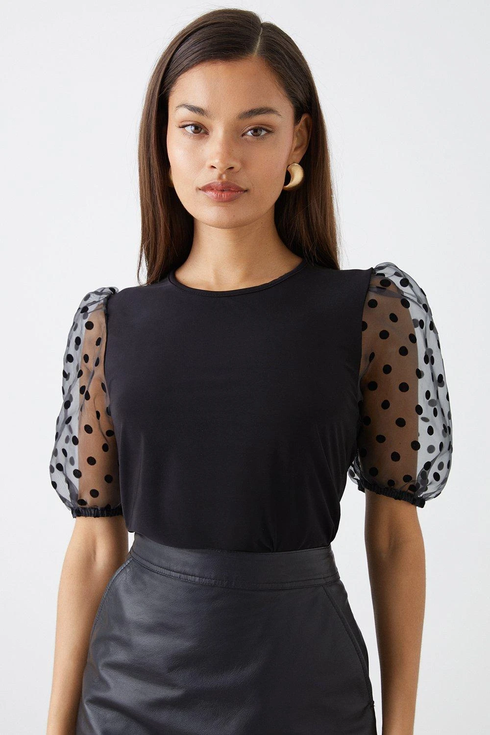 Dorothy Perkins Petite Black Spot Organza Short Sleeve Top