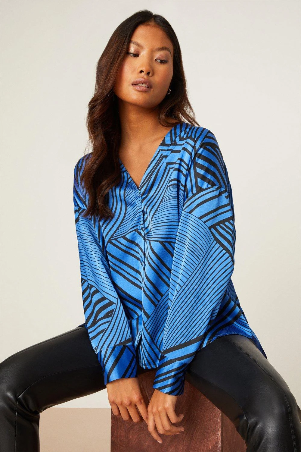 Dorothy Perkins Petite Blue Mixed Stripe Collarless Shirt