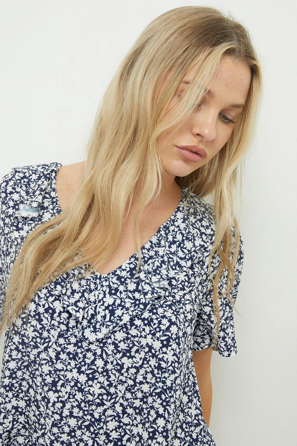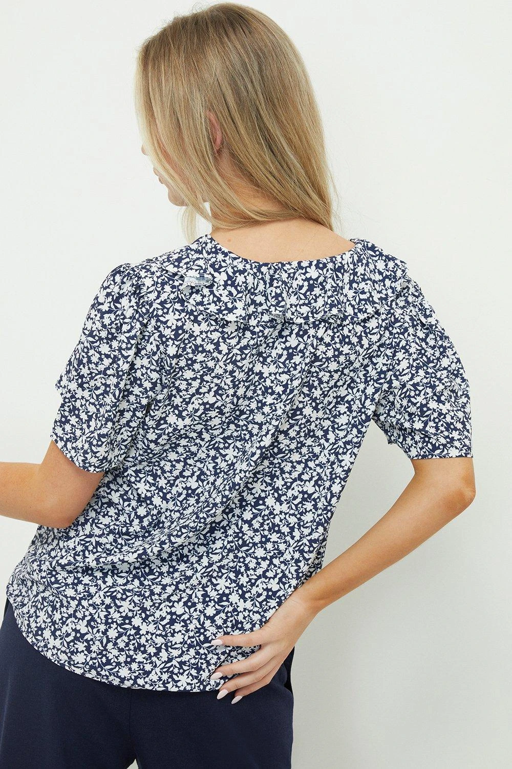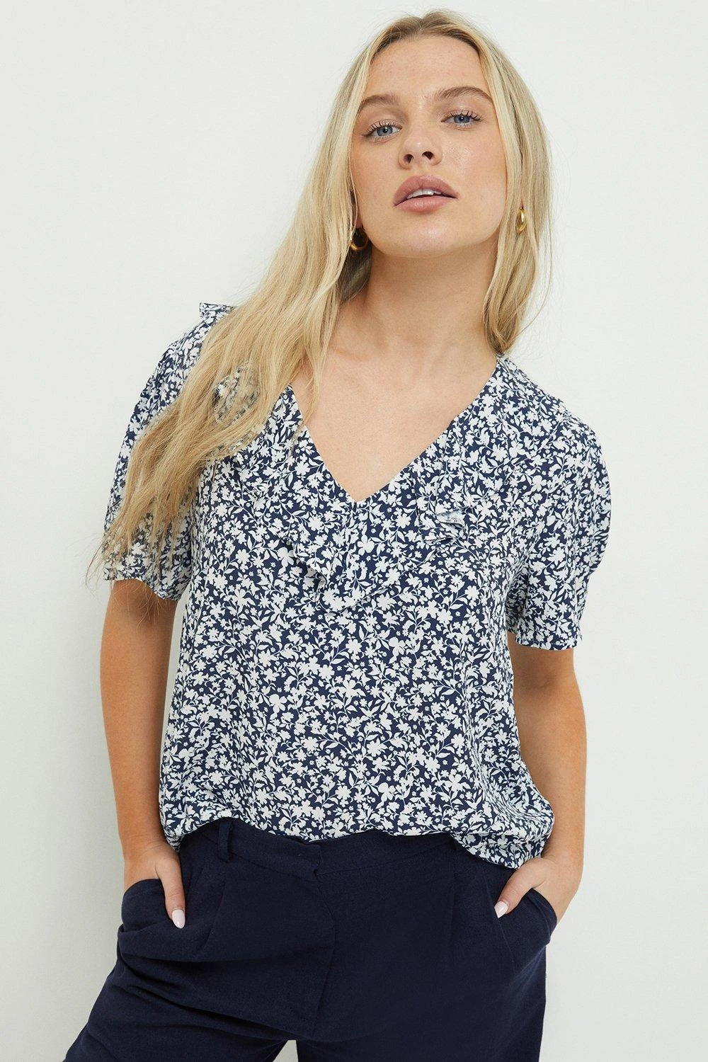 Dorothy Perkins Petite Navy Ditsy Ruffle Short Sleeve Blouse