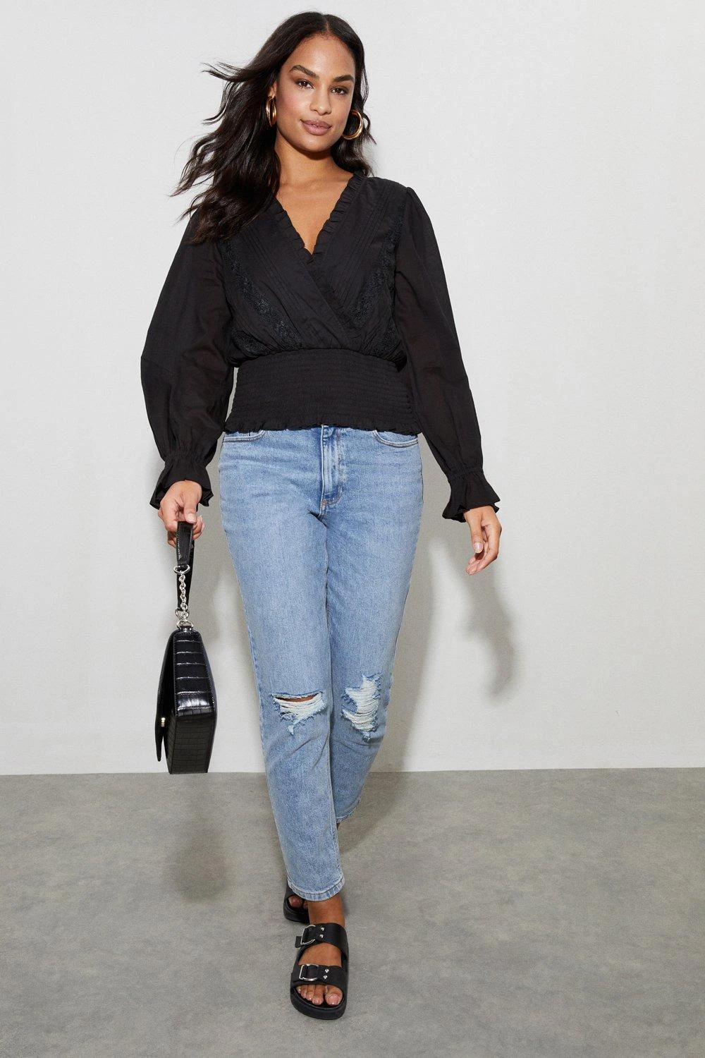 Cami or blouse? Shirt or bodysuit? Whatever you’re after, our women’s tops have you covered for every event in the social calendar. From casual fits to elevated styles for special occasions, we make it easy to nail the �jeans and a nice top’ look. Think puff sleeves, pretty prints, wrap silhouettes and so much more. Style: Petite Trim Insert Wrap Top Ideal for: Daywear