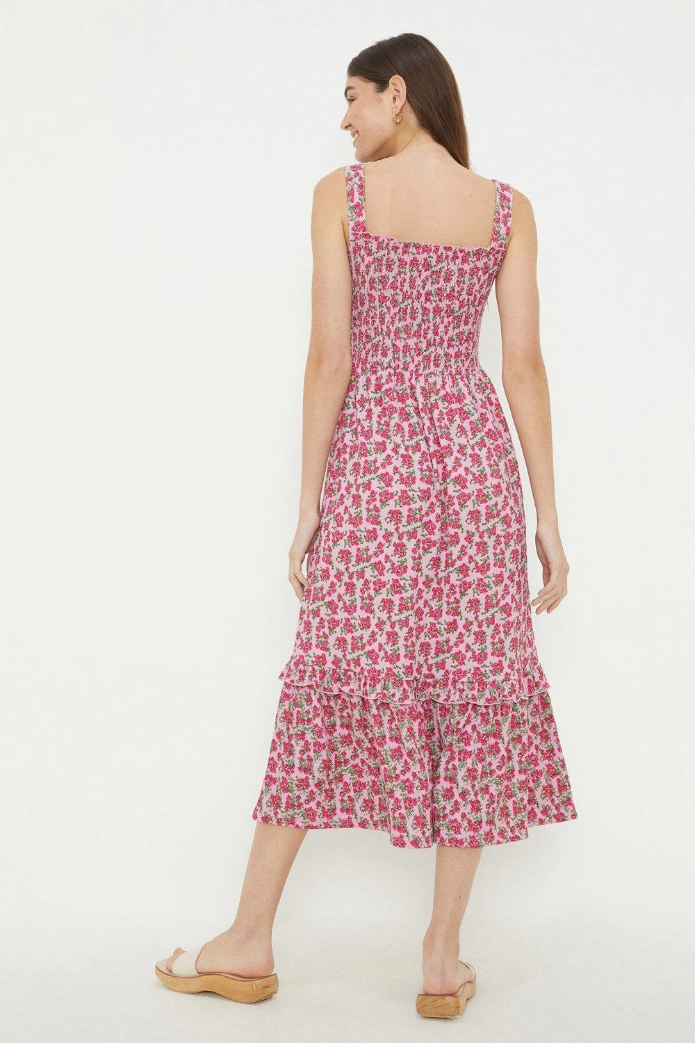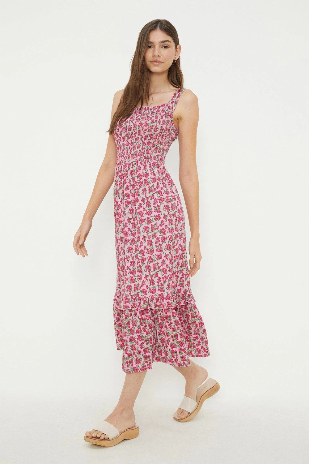 Dorothy Perkins Pink Ditsy Shirred Strappy Midi Dress