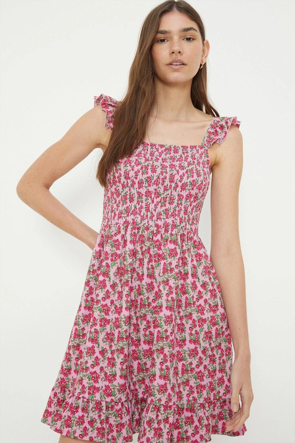 Dorothy Perkins Pink Ditsy Shirred Strappy Mini Dress