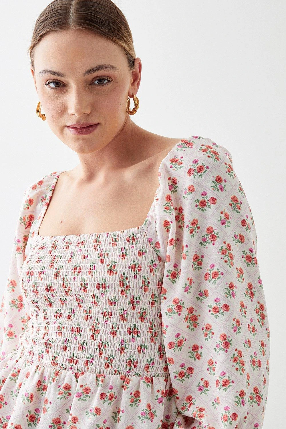 Cami or blouse? Shirt or bodysuit? Whatever you’re after, our women’s tops have you covered for every event in the social calendar. From casual fits to elevated styles for special occasions, we make it easy to nail the ‘jeans and a nice top’ look. Think puff sleeves, pretty prints, wrap silhouettes and so much more. Style: Pink Rose Shirred Blouse. Ideal for: Daywear. Design: Shirred. Model wears size UK 10 and is 5′ 9″ tall. Make-up & Fragrance: Primer (Estée Lauder, The Mattifier Shine Control Perfecting Primer + Finisher), Foundation (Lancôme, Teint Miracle Luminous Satin Foundation), Mascara (Estée Lauder, Double Wear Zero-Smudge Lengthening Mascara), Blusher (Benefit, Wanderful World Blushes Starlaa Rosy Bronze Powder Blusher), Setting Spray (Benefit, Porefessional Super Setter Setting Spray Mini 30ml), Fragrance (Elie Saab, Elixir).
