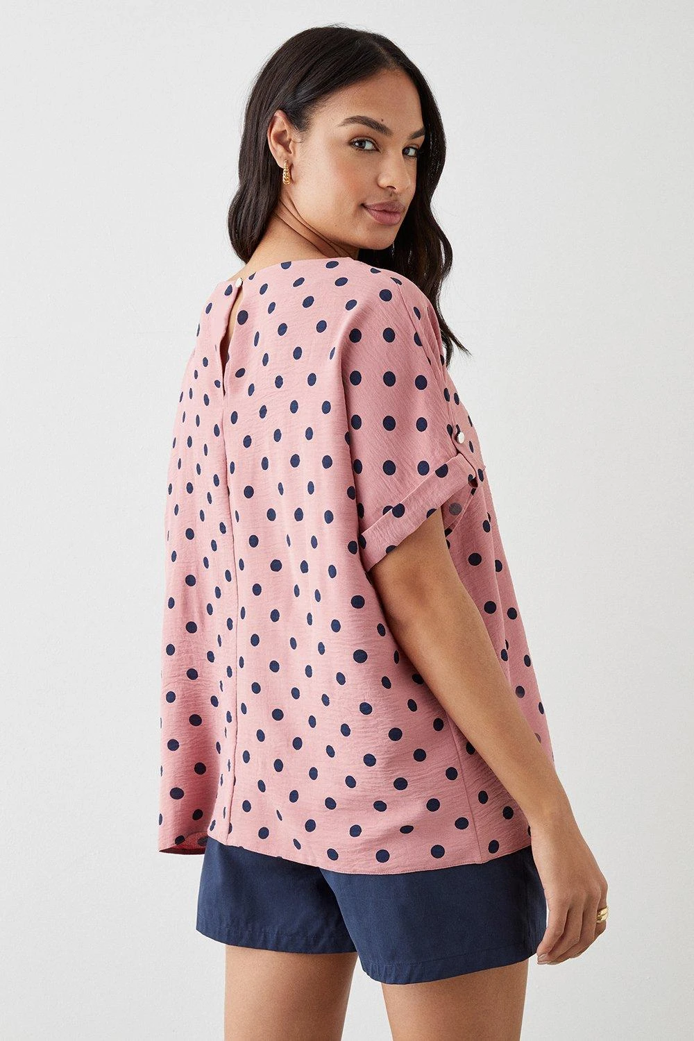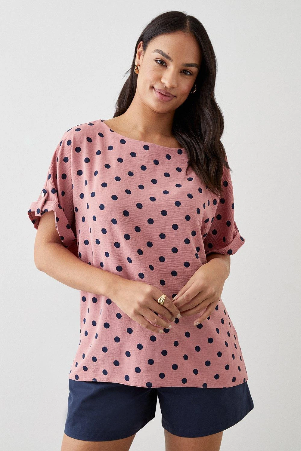 Dorothy Perkins Pink Spot Roll Sleeve Blouse