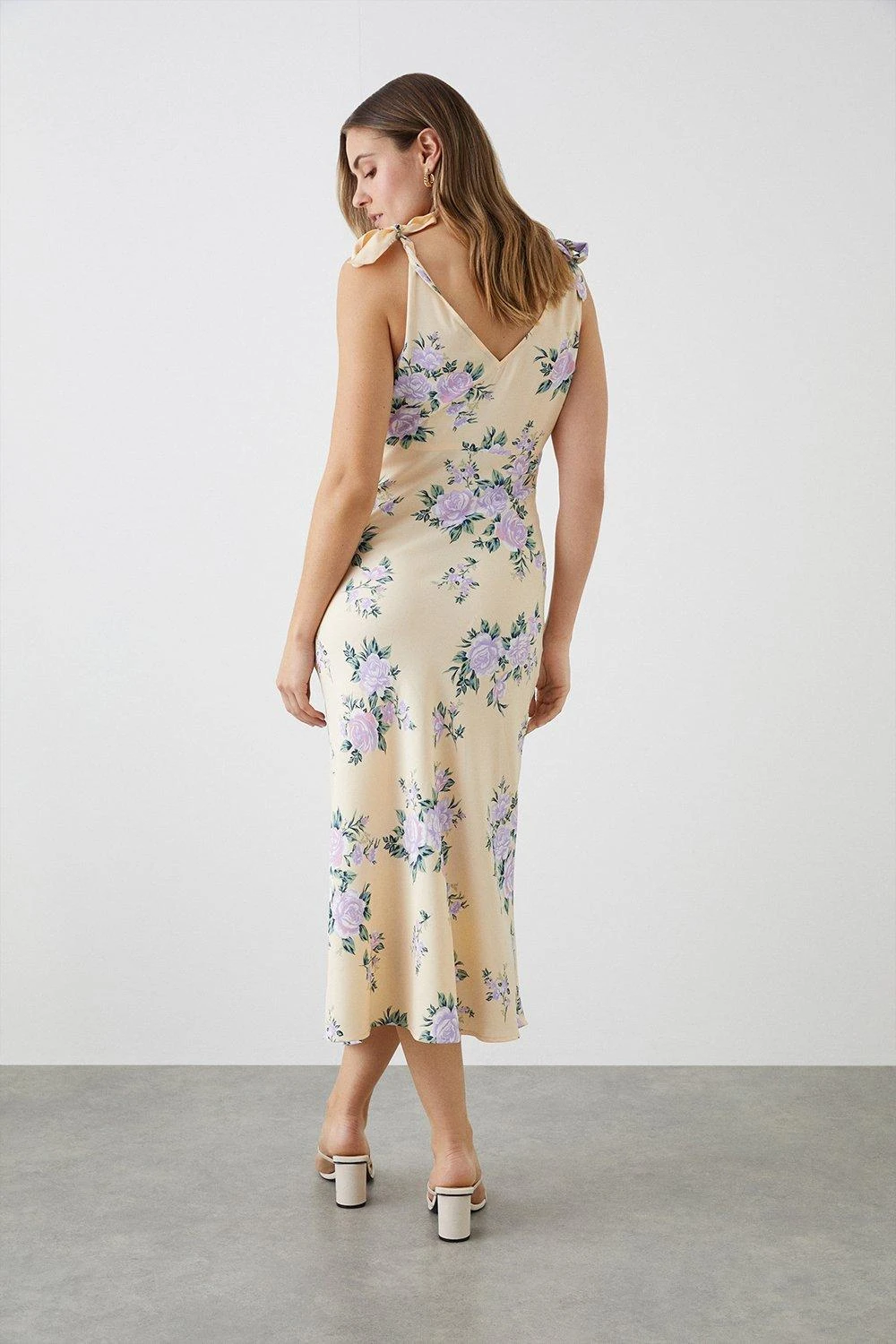 Dorothy Perkins Purple Floral Print Bias Cut Tie Shoulder Midi Dress