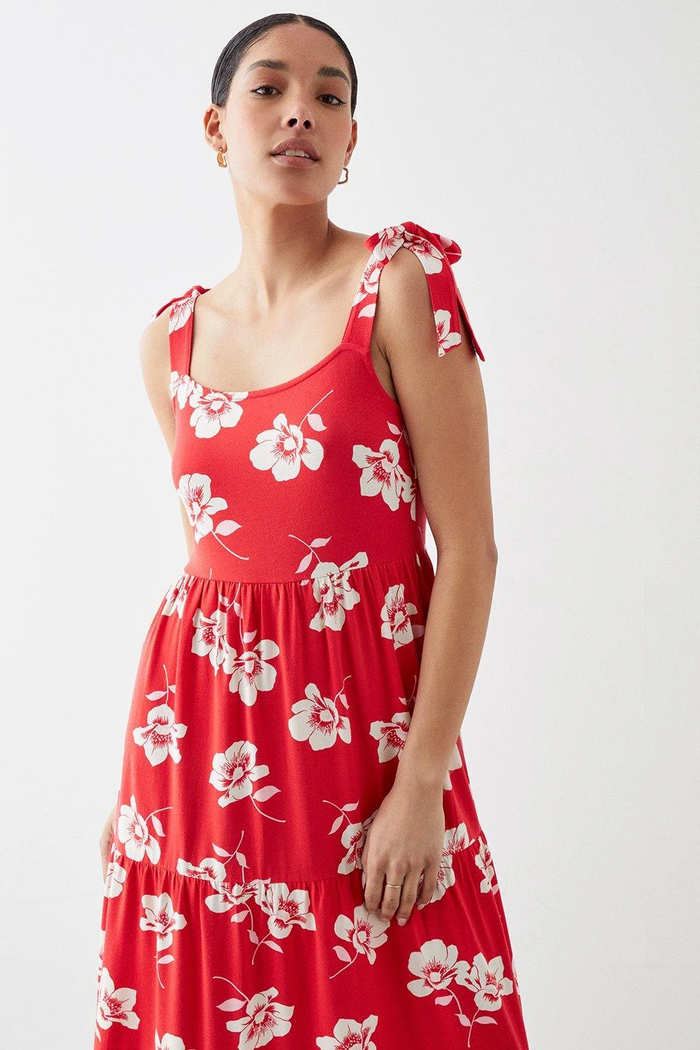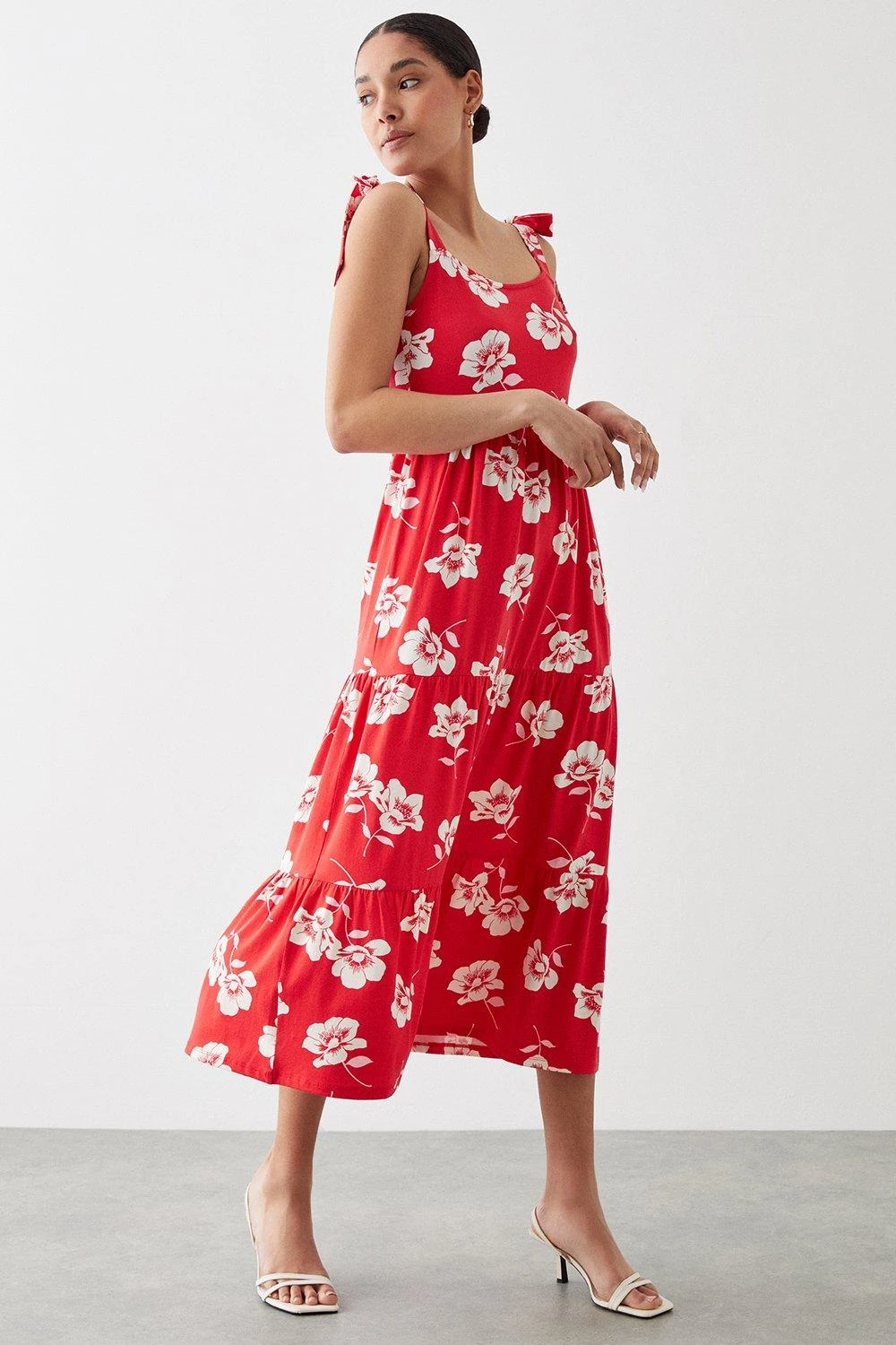 Dorothy Perkins Red Floral Tie Shoulder Midi Dress