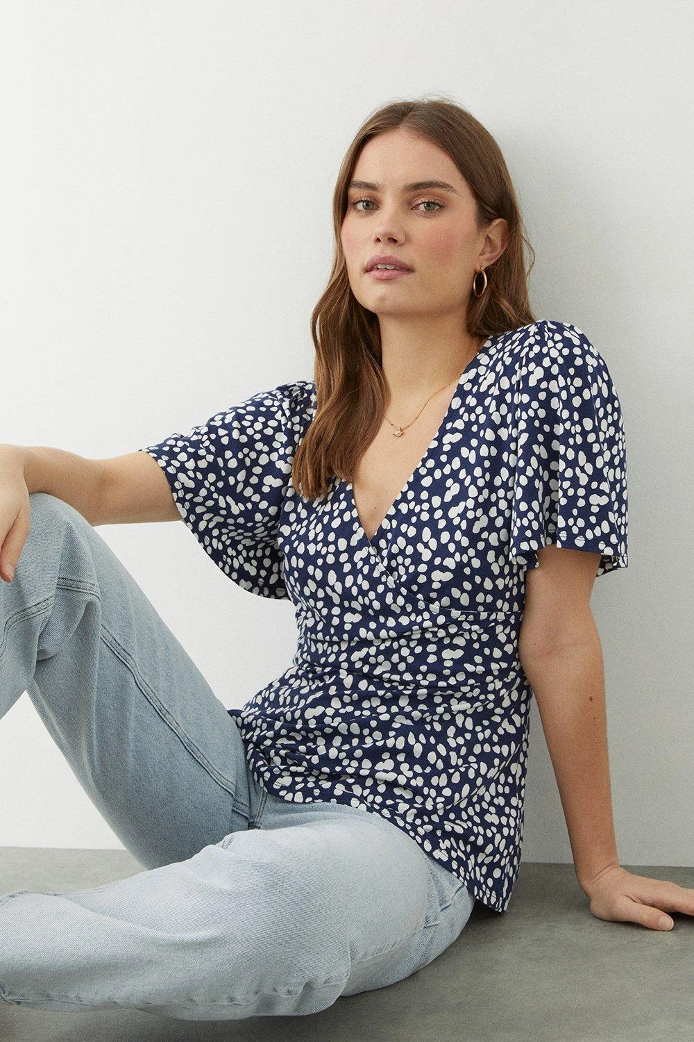 Dorothy Perkins Spot Print Angel Sleeve Wrap Top