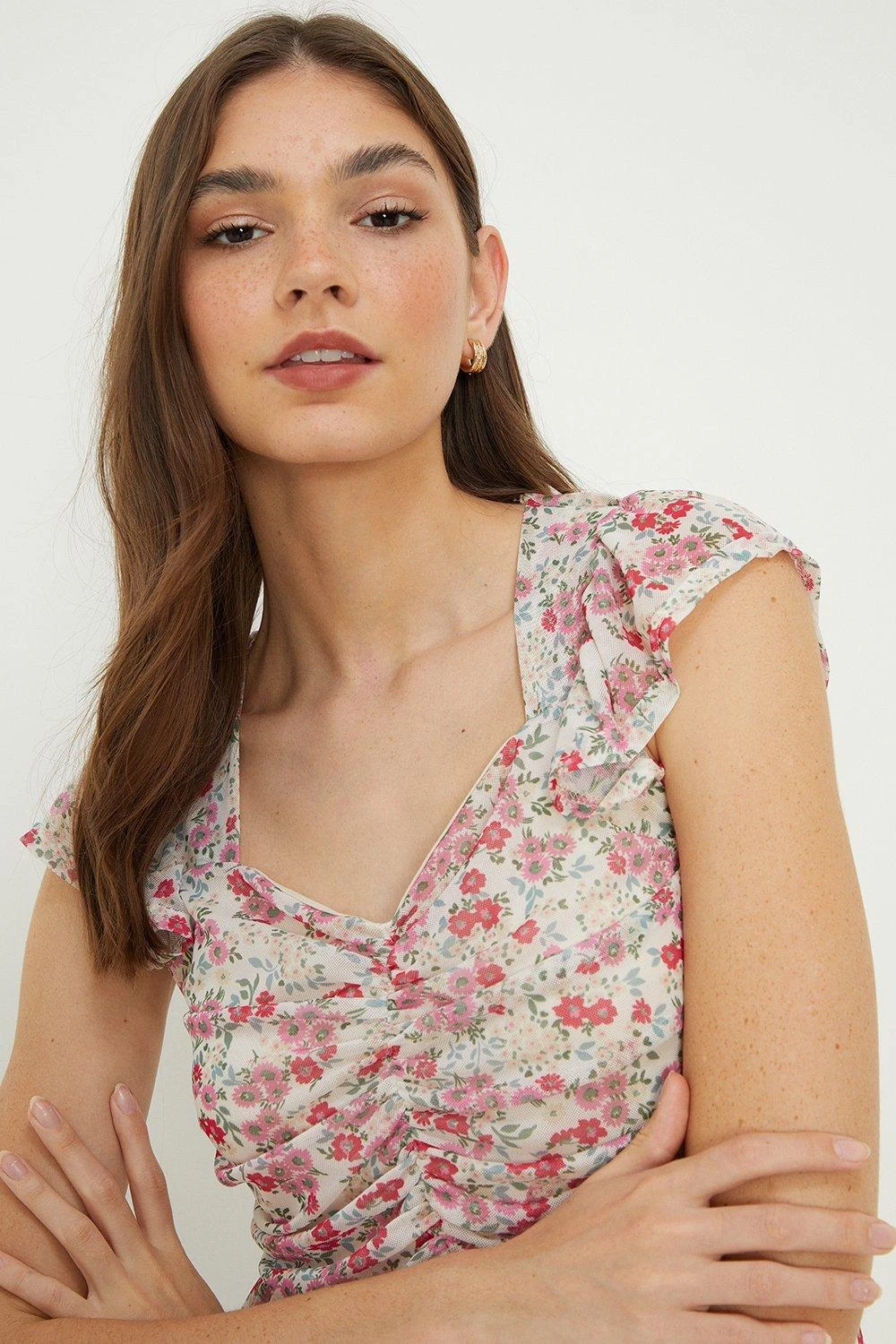 Dorothy Perkins Sweetheart Ruched Frill Sleeve Top