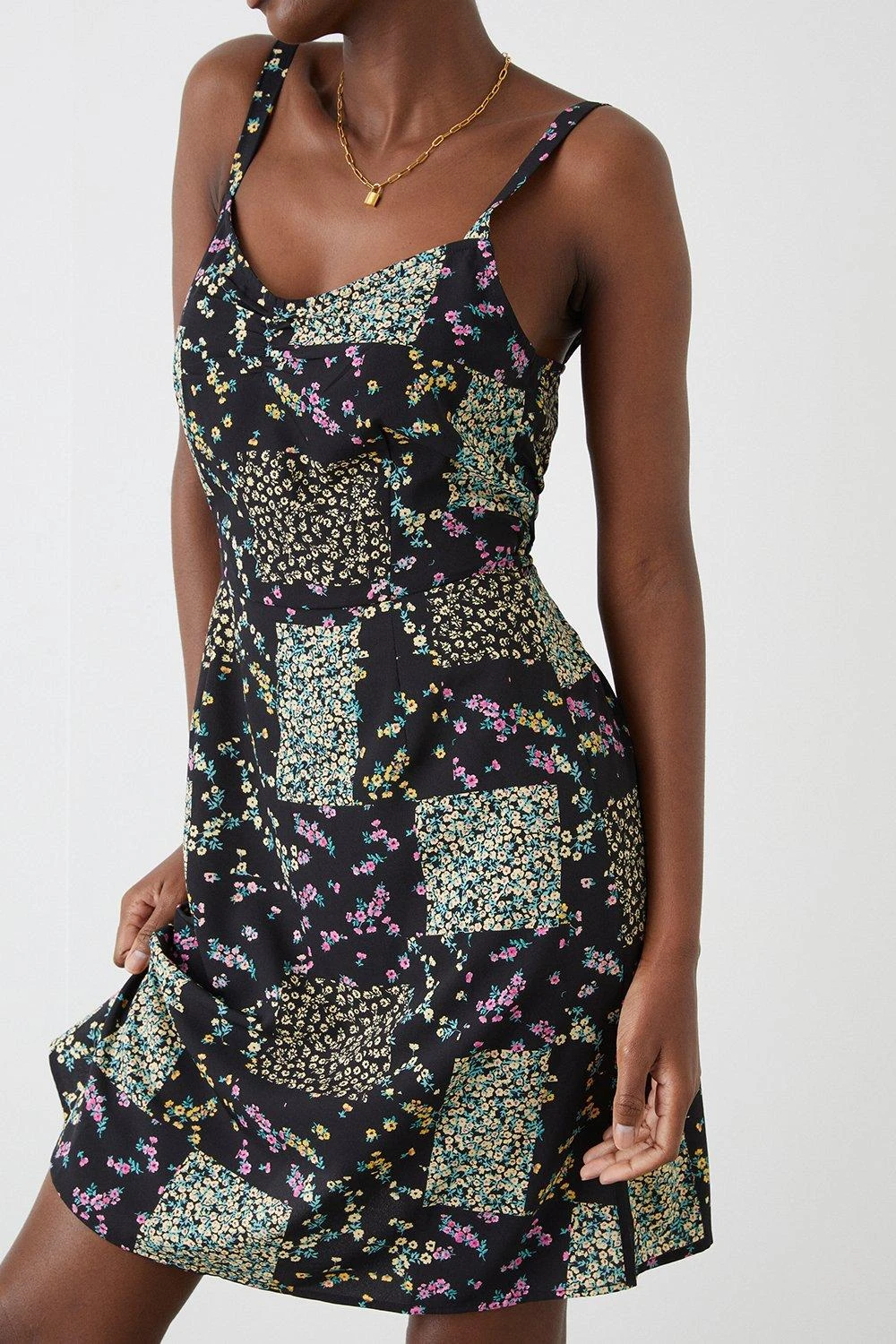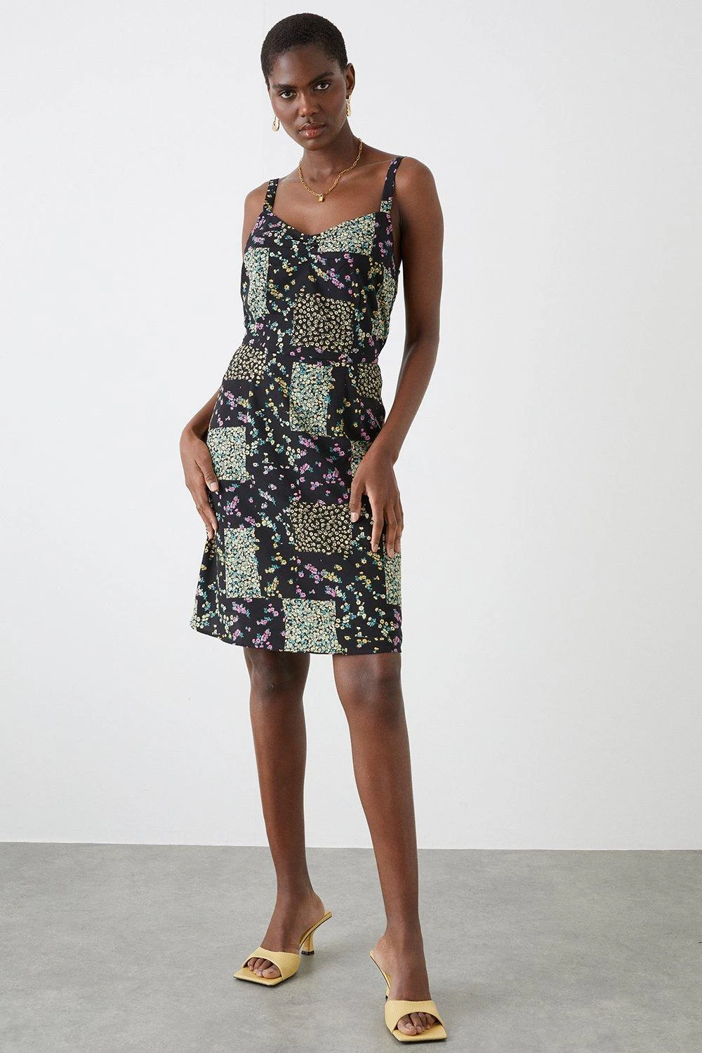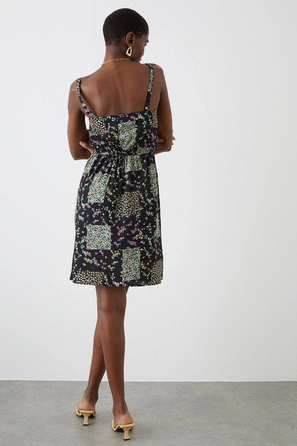 Dorothy Perkins Tall Black Ditsy Scarf Print V Neck Mini Dress