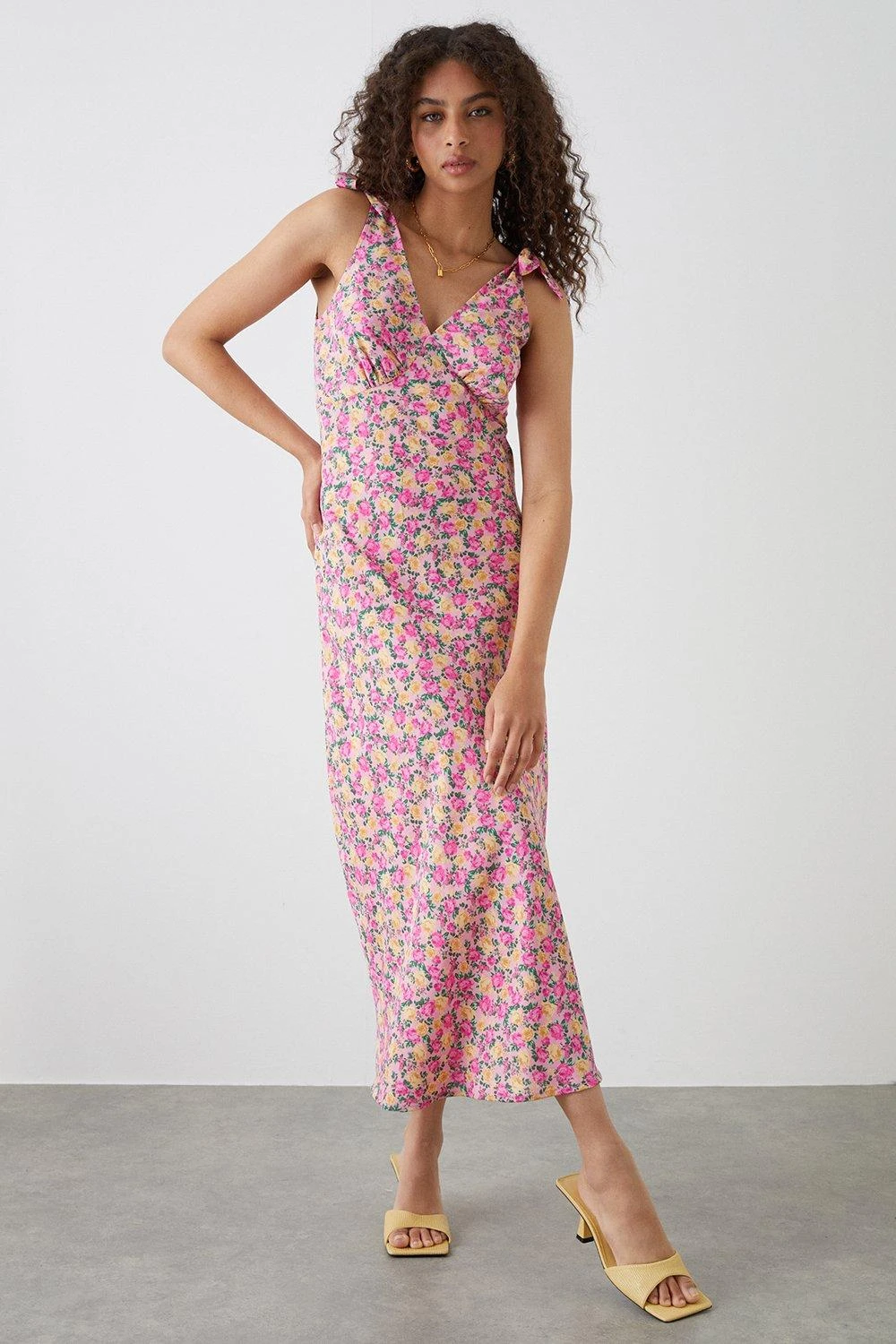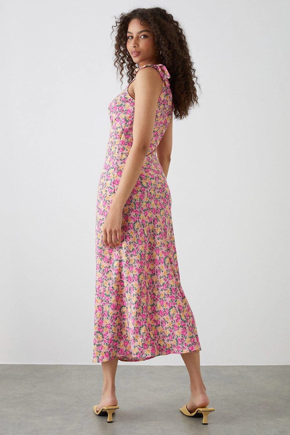 Dorothy Perkins Tall Pink Floral Print Bias Cut Tie Shoulder Midi Dress