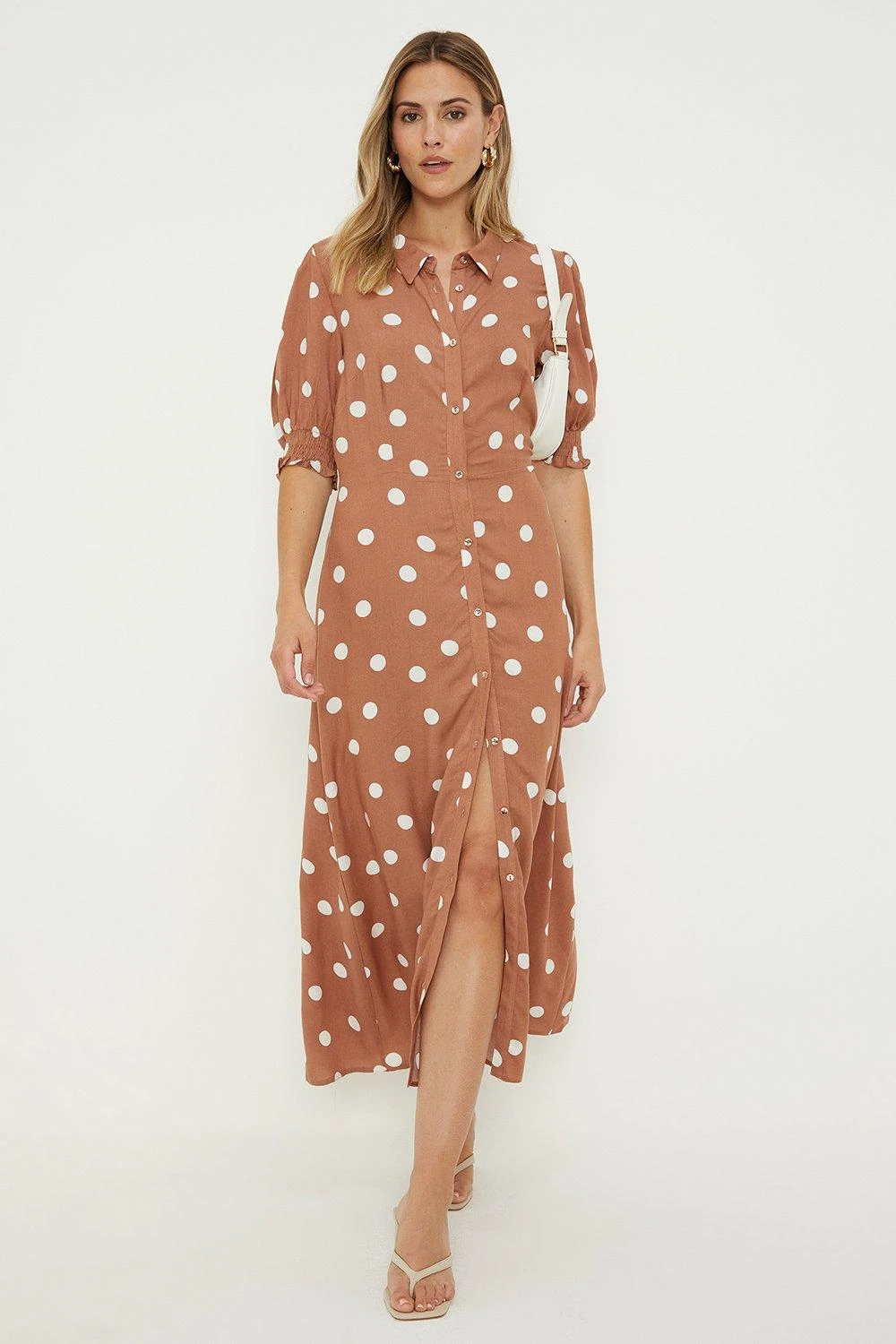 Dorothy Perkins Taupe Spot Print Midi Shirt Dress