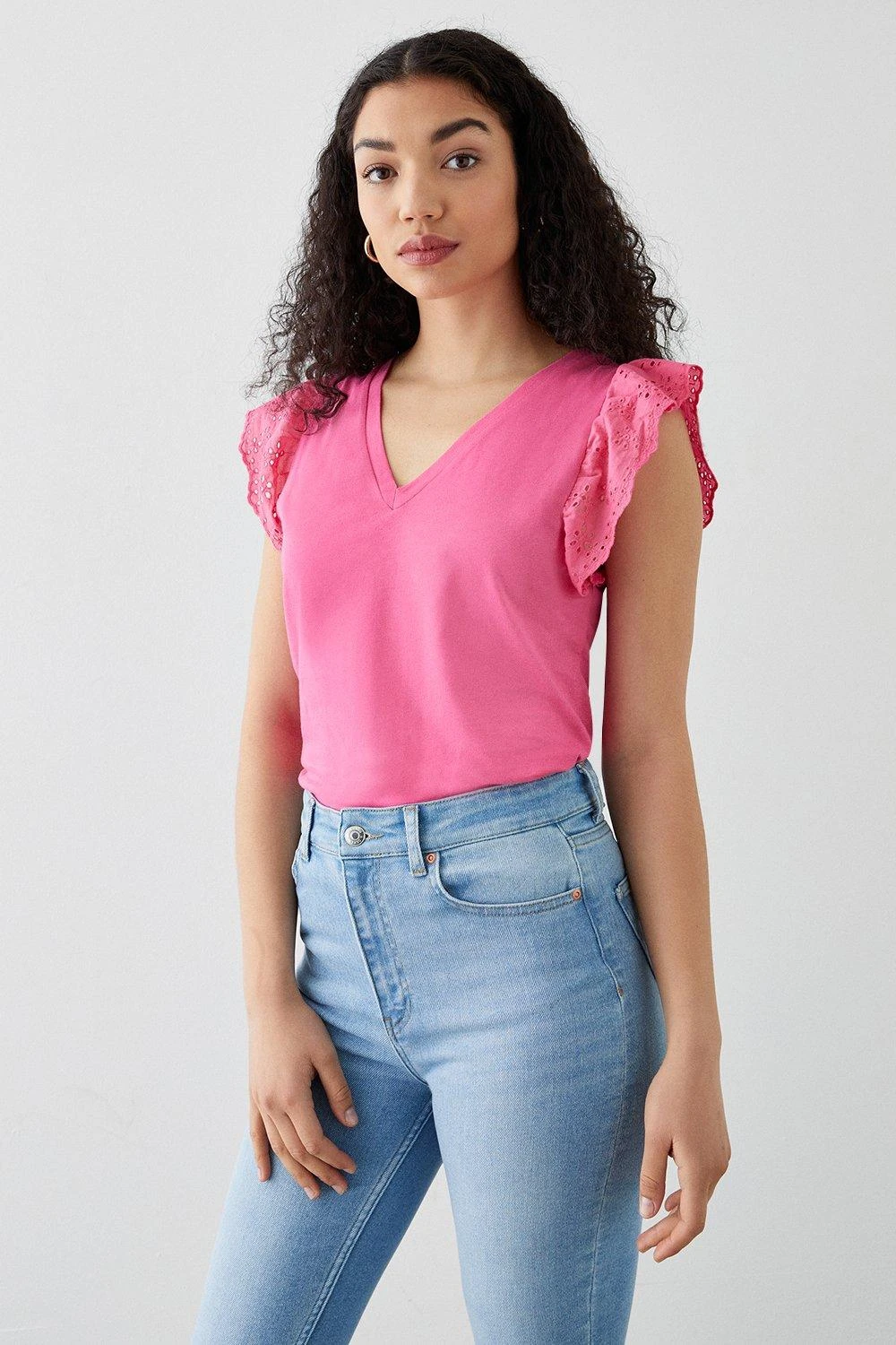 Cami or blouse? Shirt or bodysuit? Whatever you’re after, our women’s tops have you covered for every event in the social calendar. From casual fits to elevated styles for special occasions, we make it easy to nail the ‘jeans and a nice top’ look. Think puff sleeves, pretty prints, wrap silhouettes and so much more. Style: V Neck Frill Sleeve Top. Ideal for: Daywear. Design: Embroidered. Model wears size UK 10 and is 5′ 9″ tall. Make-up & Fragrance: Primer (Yves Saint Laurent, Touche Eclat Blur Primer 30ml), Foundation (Estée Lauder, Double Wear Stay in Place Foundation SPF10), Bronzer (Benefit, Hoola Matte Powder Bronzer), Blusher (Benefit, Wanderful World Blushes Starlaa Rosy Bronze Powder Blusher), Setting Spray (Urban Decay, All Nighter Setting Spray 118ml), Fragrance (Ghost The Fragrance Eau De Toilette).