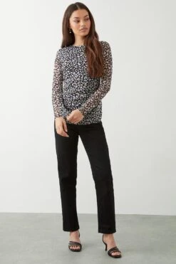 Dorothy Perkins Petite Mesh Drape Body Fitted Long Sleeve Top