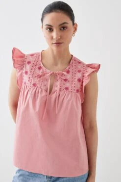 Dorothy Perkins Petite Pink Ditsy Cold Shoulder V Neck Blouse